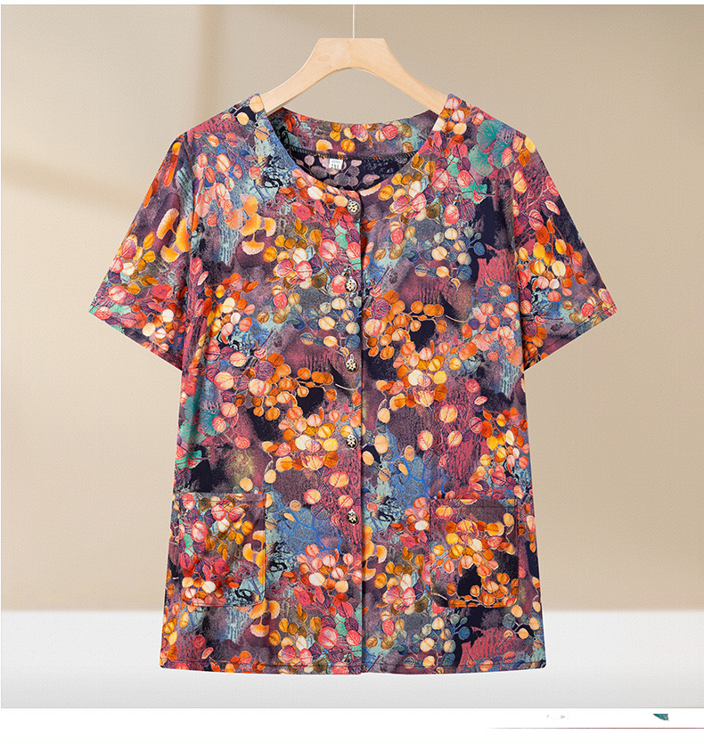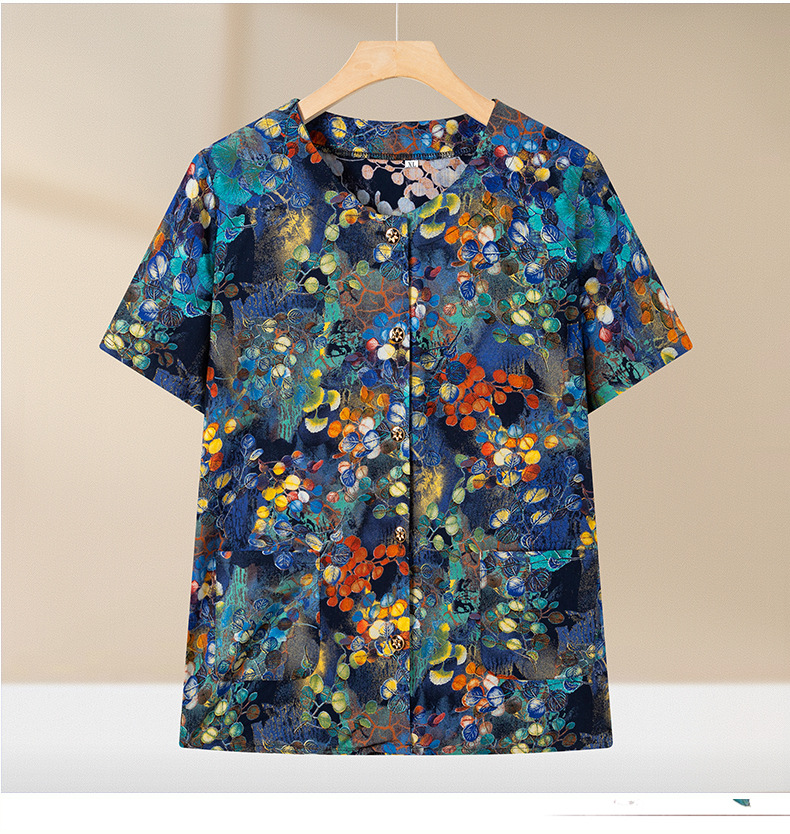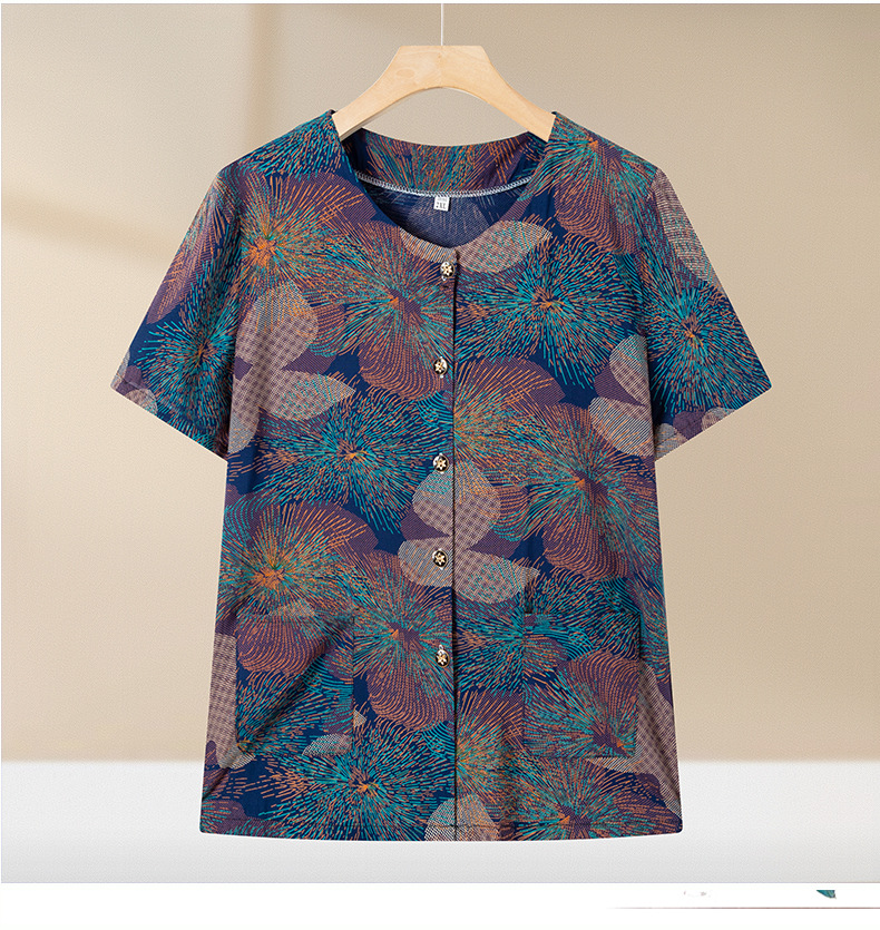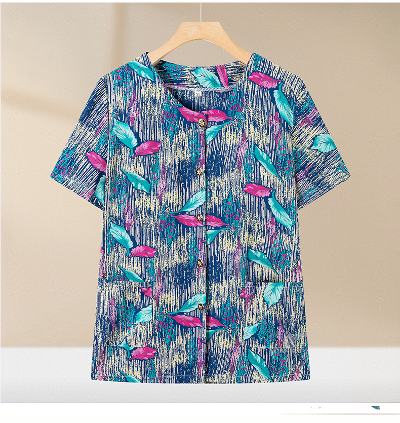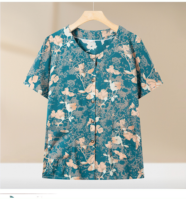 중년 및 노인 여성 어머니의 면화 실크 세트 할머니 카디건 짧은 소매 인공면 파자마 늙은면 실크 투피스 세트스토어 가기