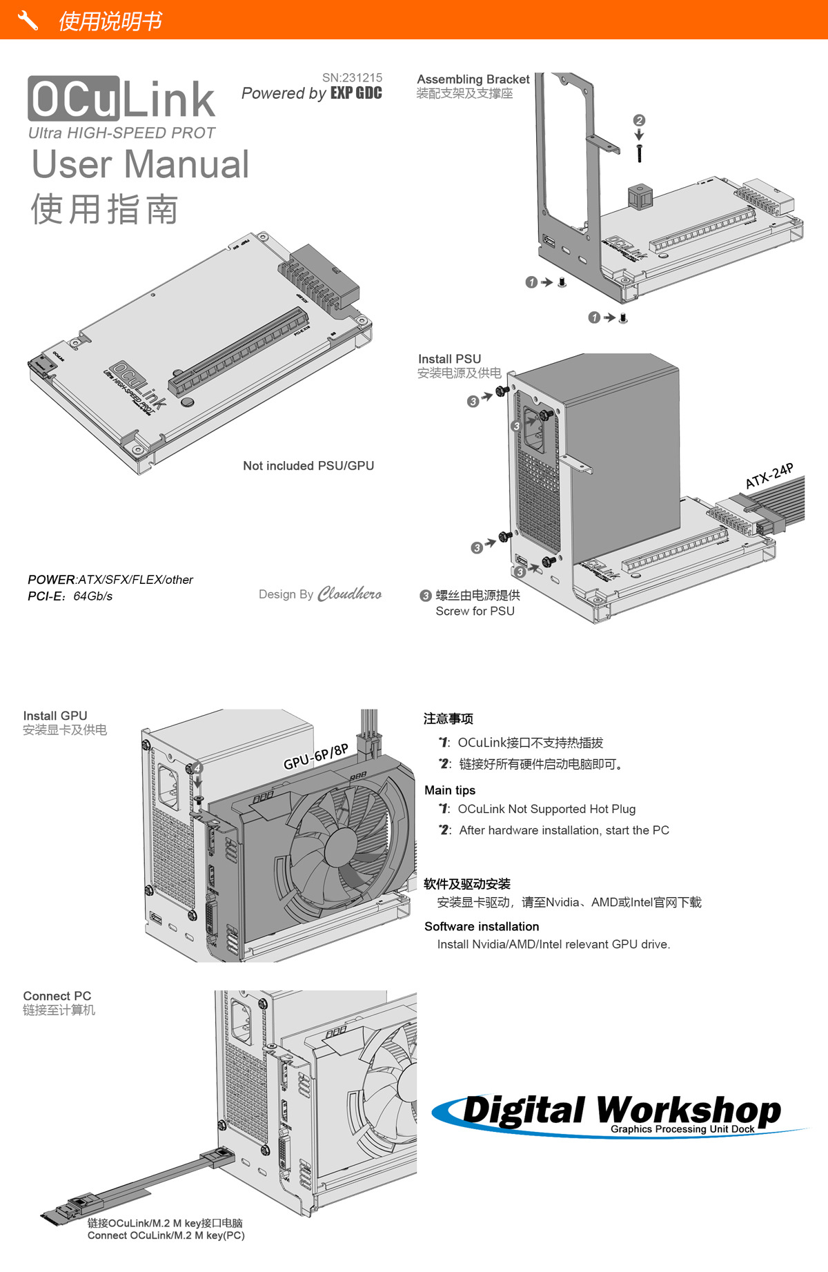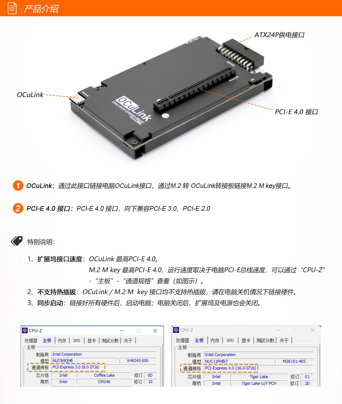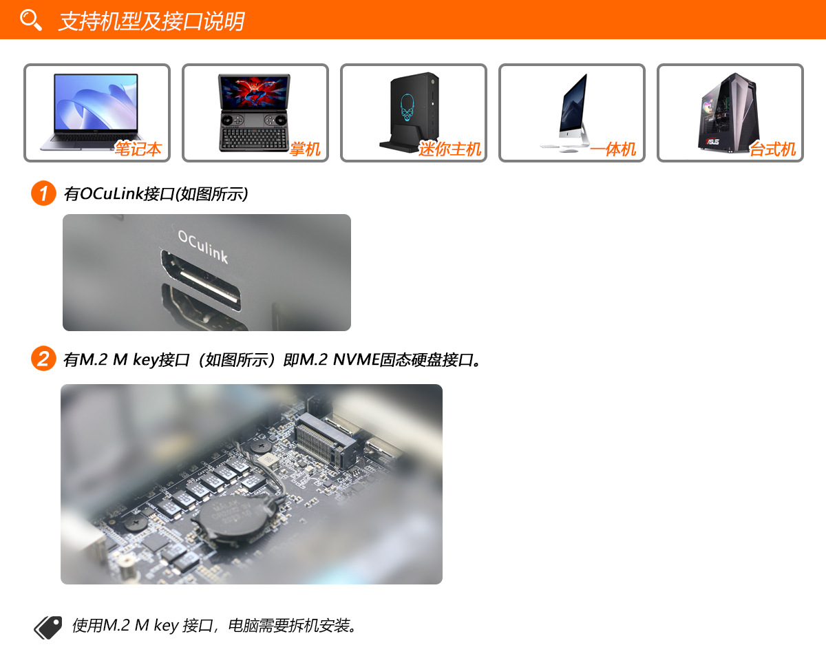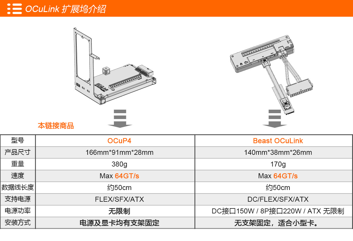OCuLink 외부 그래픽 도킹 스테이션 OCuP4v2 PCI-E4.0 ReDriver 호환 칩 장착