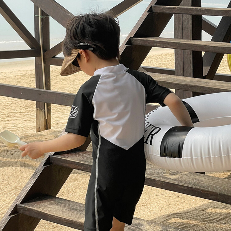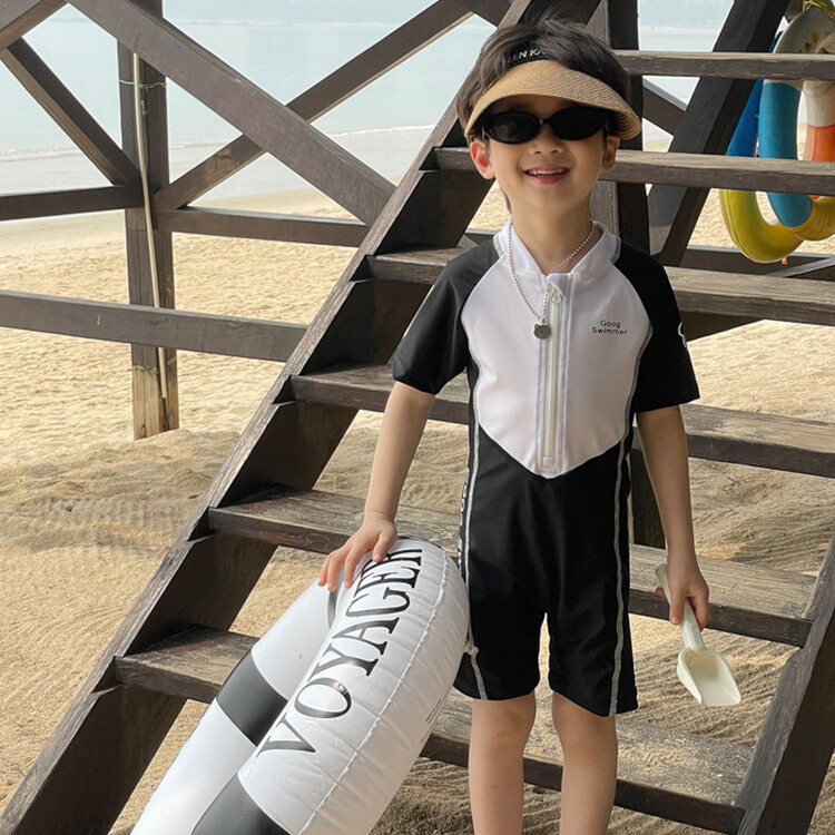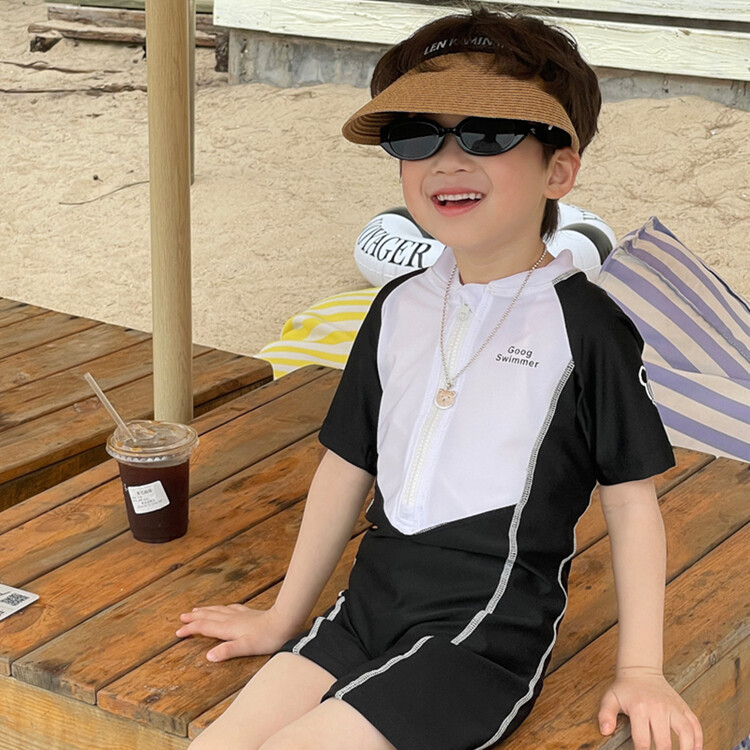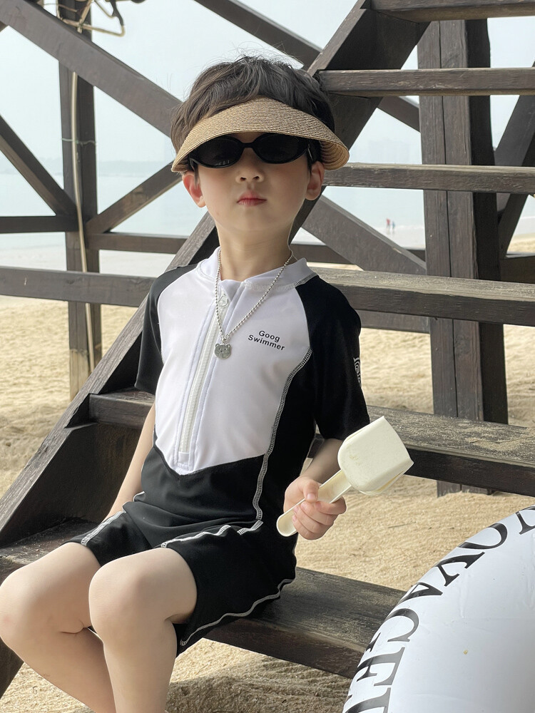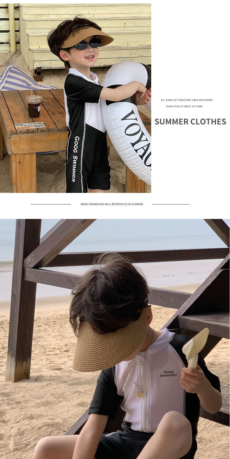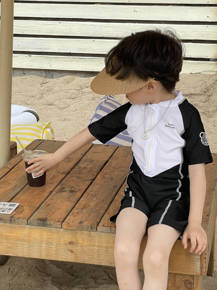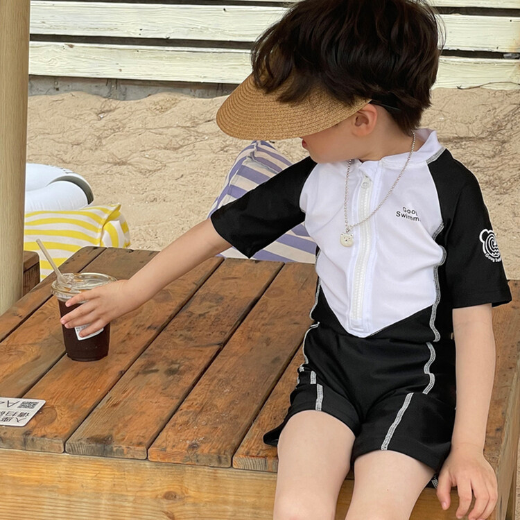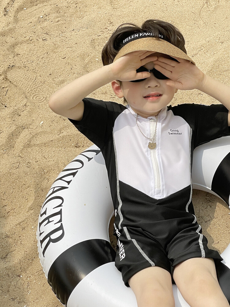 2024 새로운 어린이 원피스 수영복 어린이 간단한 흑백 매칭 수영복 남녀 보물 해변 휴가 수영복