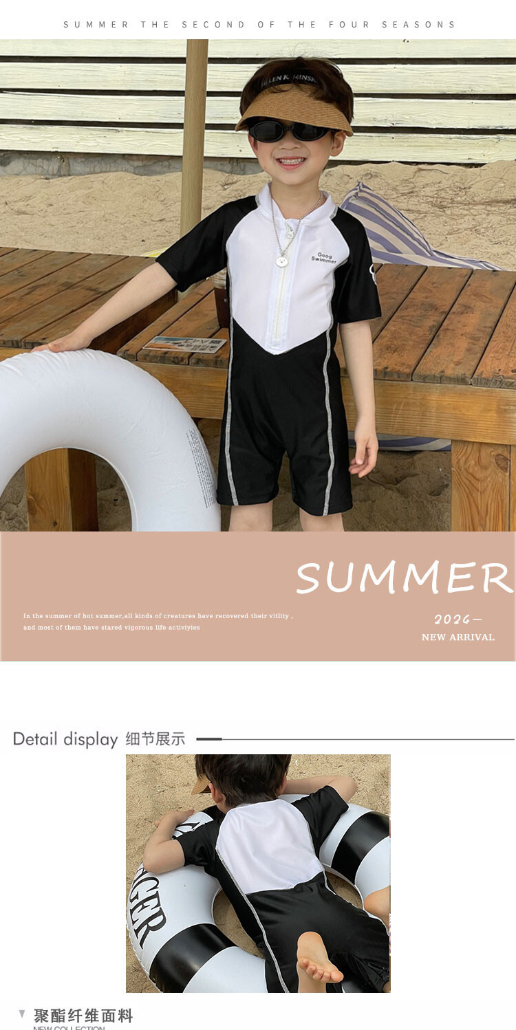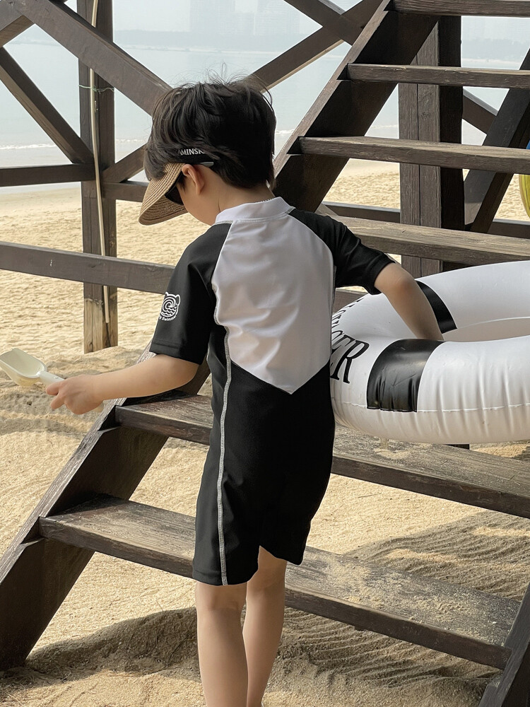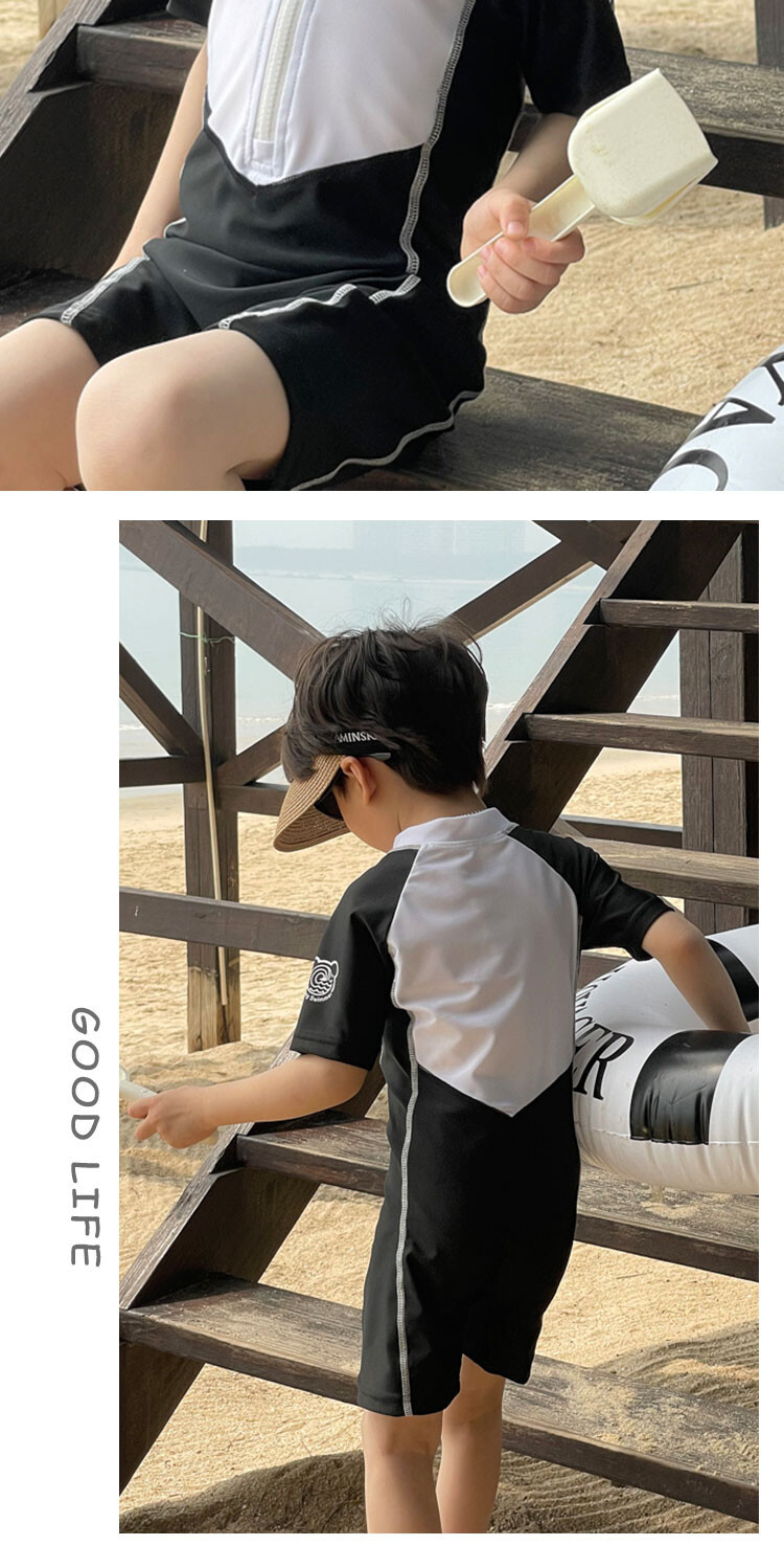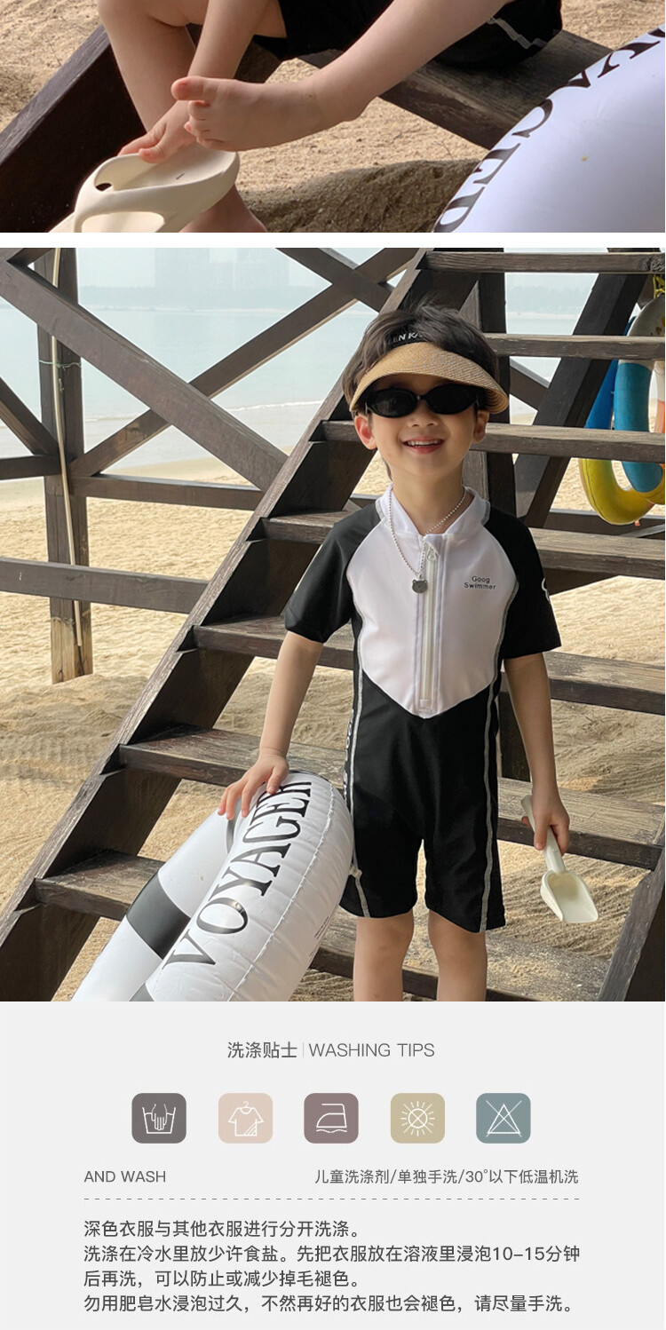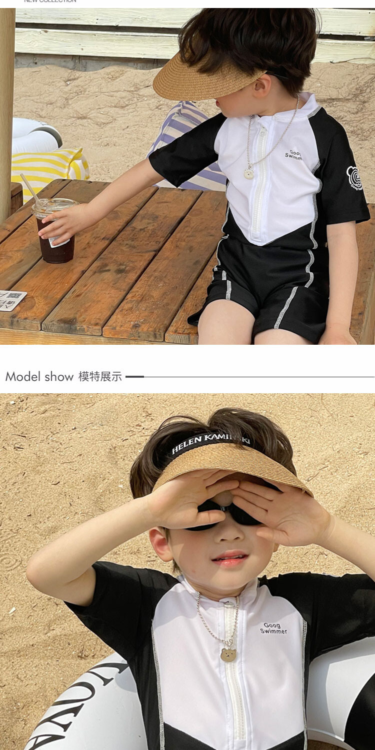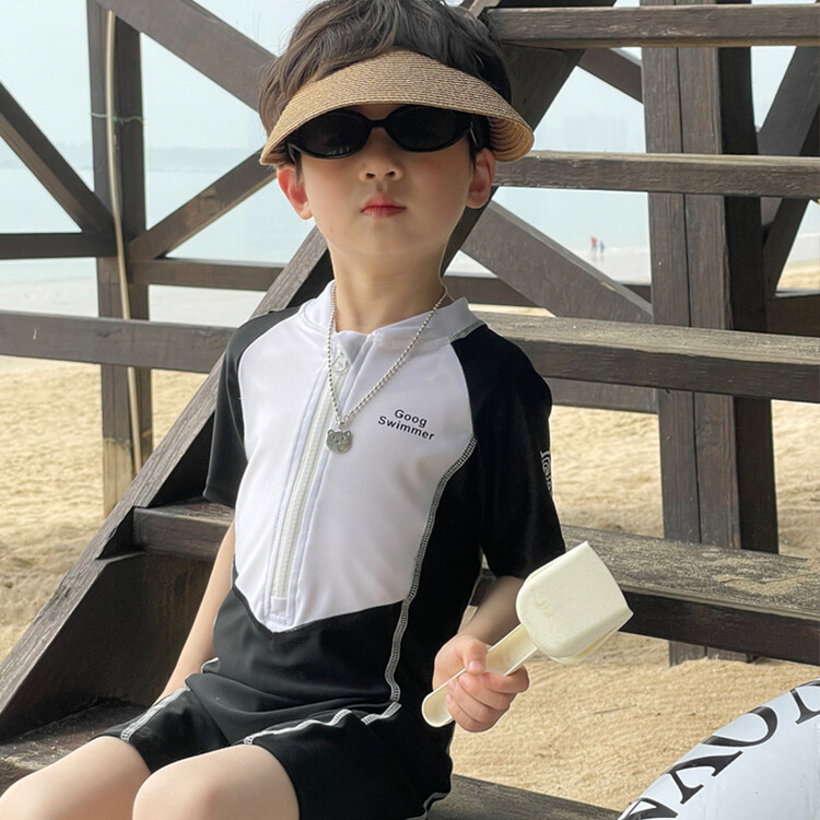 2024 새로운 어린이 원피스 수영복 어린이 간단한 흑백 매칭 수영복 남녀 보물 해변 휴가 수영복