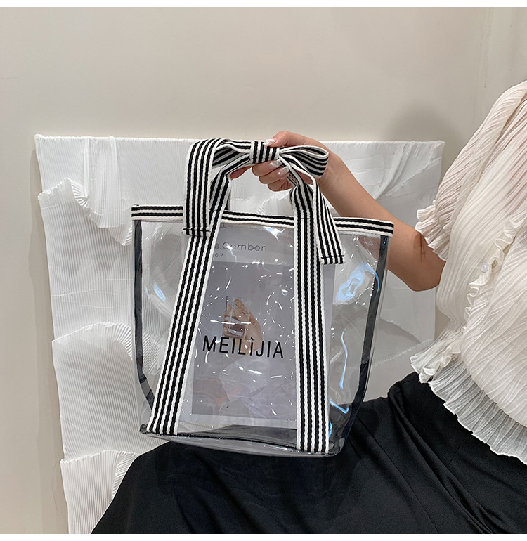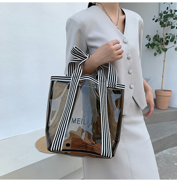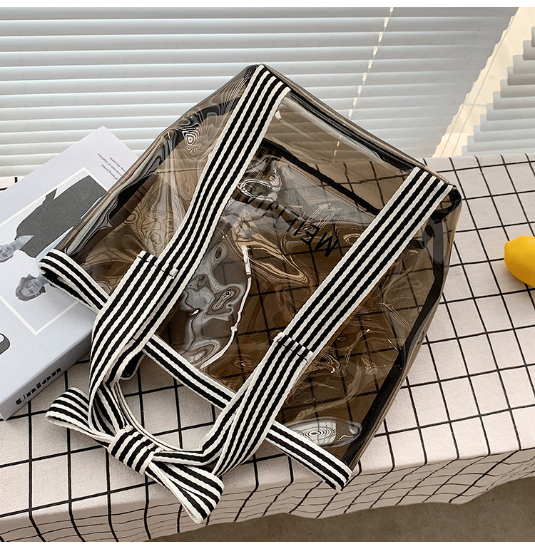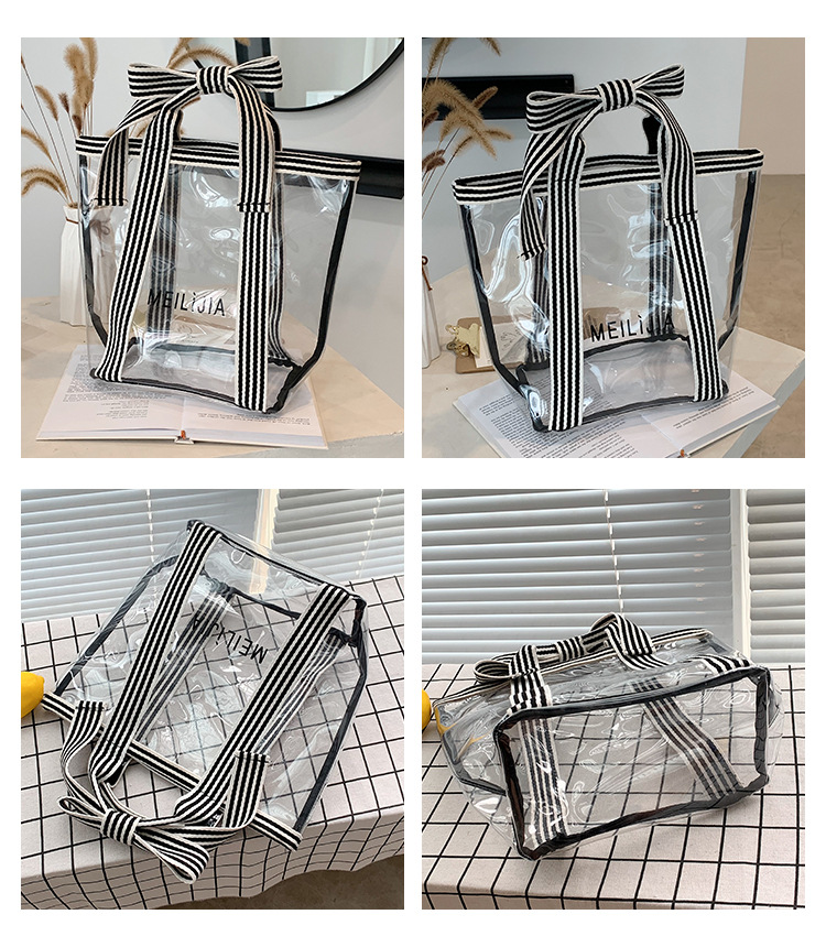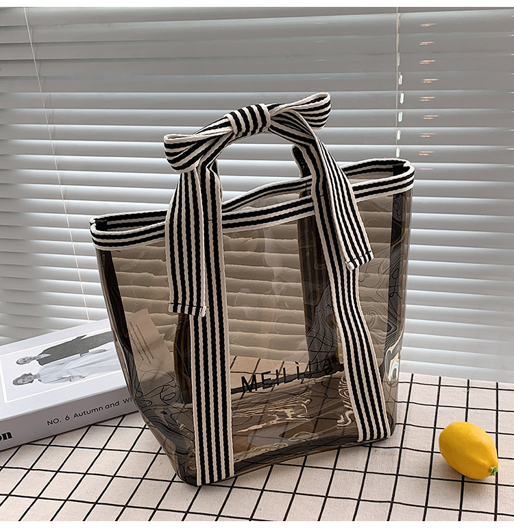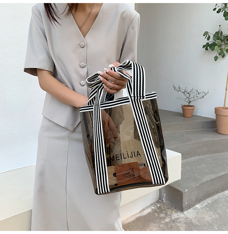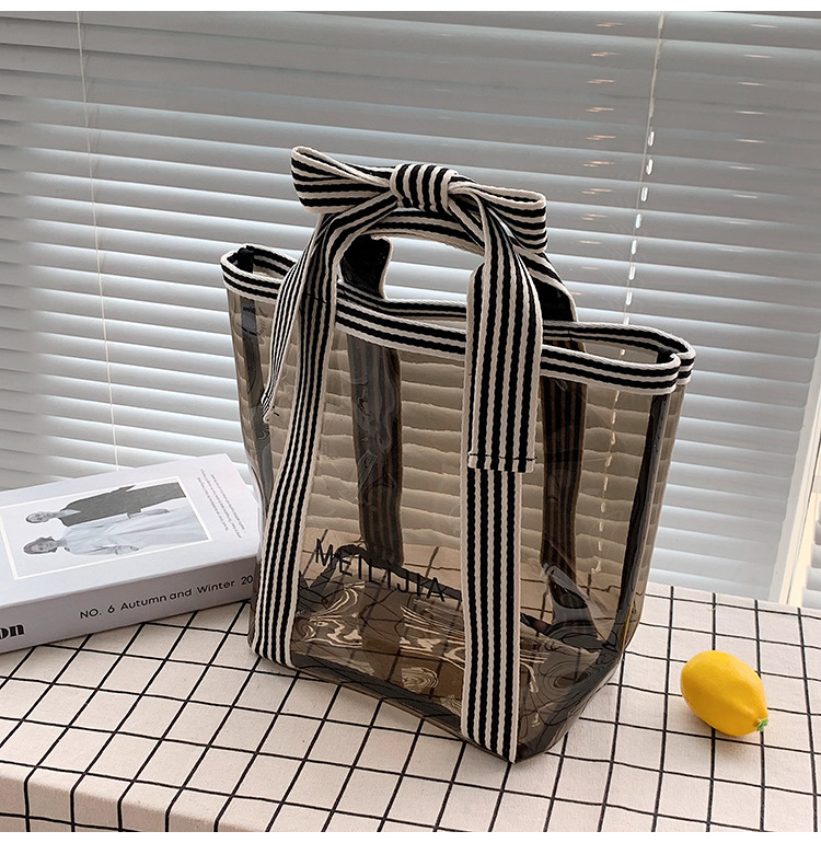 한국식 투명 메쉬 중공 토트 백 휴대용 쇼핑백 세탁 가방 화장품 가방 통근 점심 가방 미라 가방
