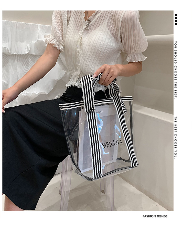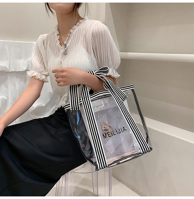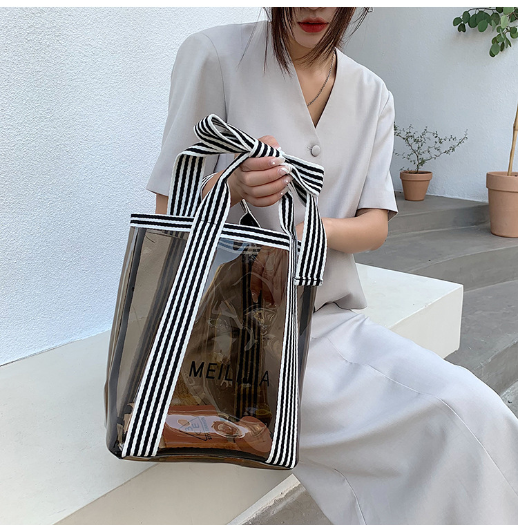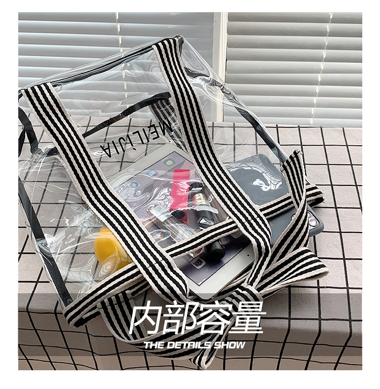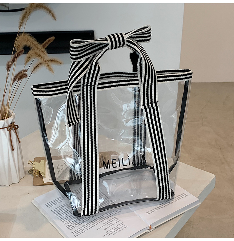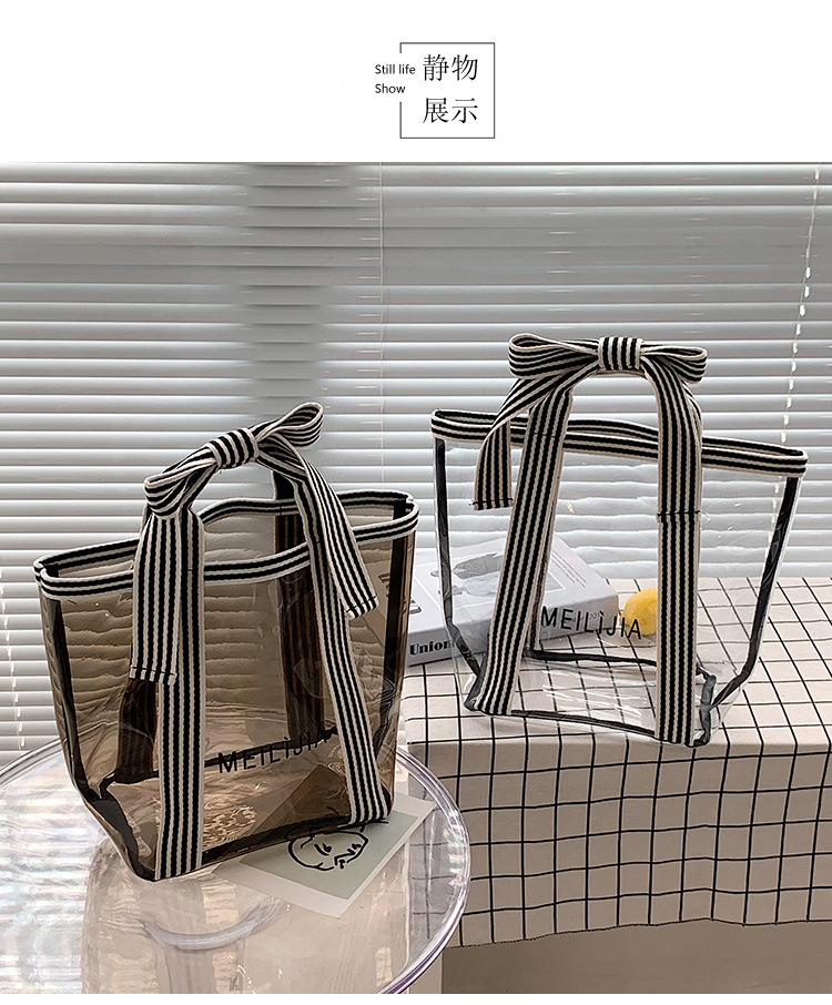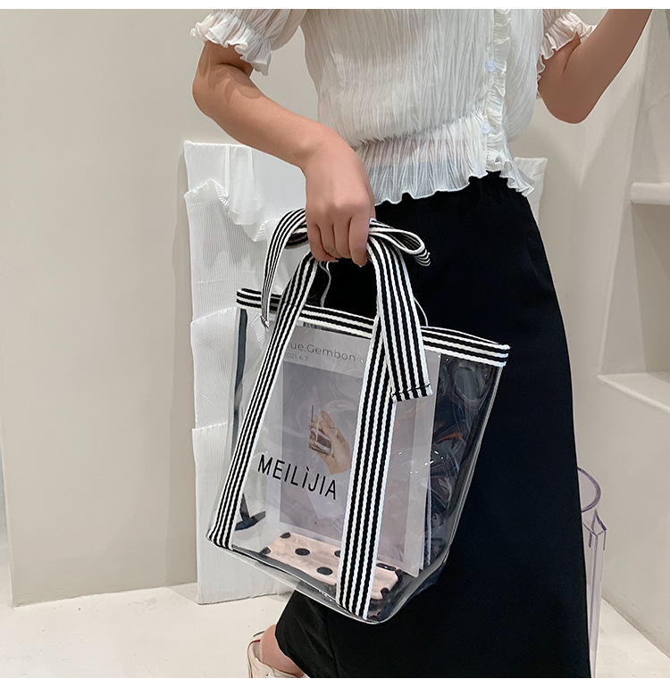 한국식 투명 메쉬 중공 토트 백 휴대용 쇼핑백 세탁 가방 화장품 가방 통근 점심 가방 미라 가방