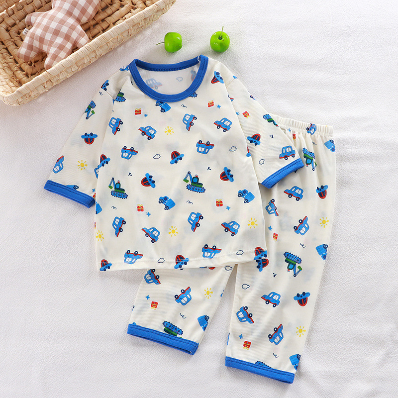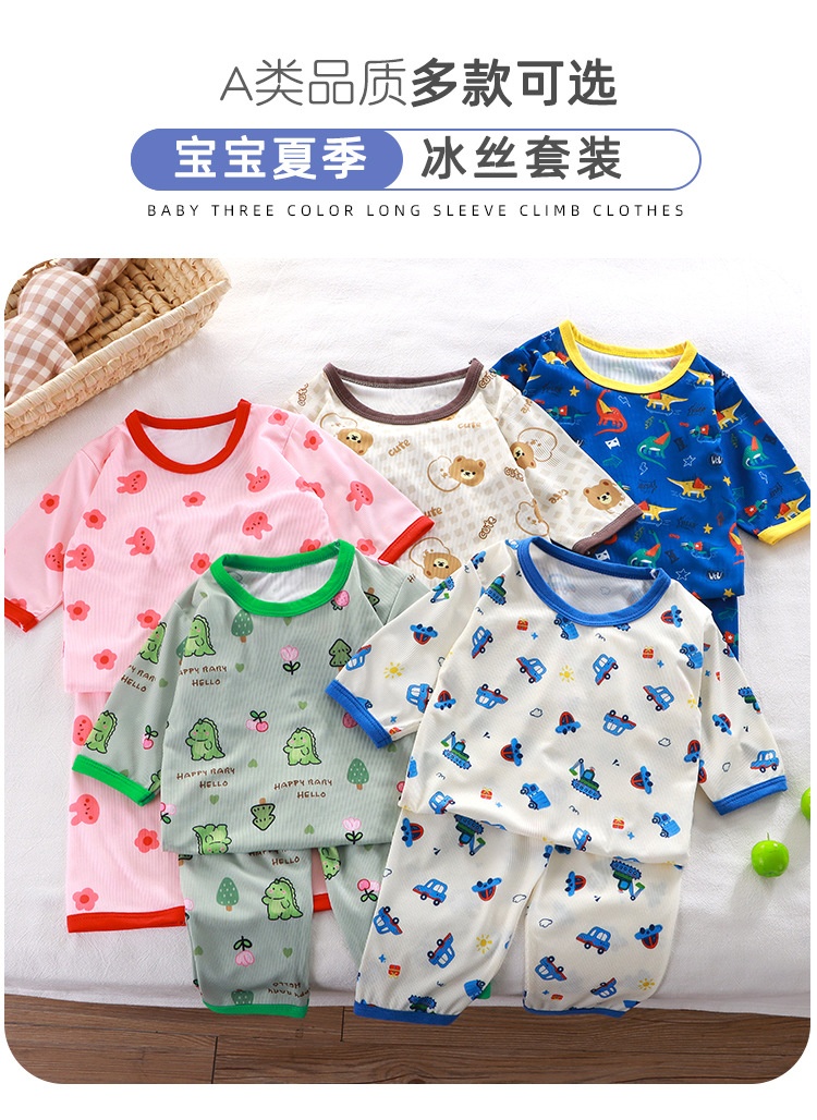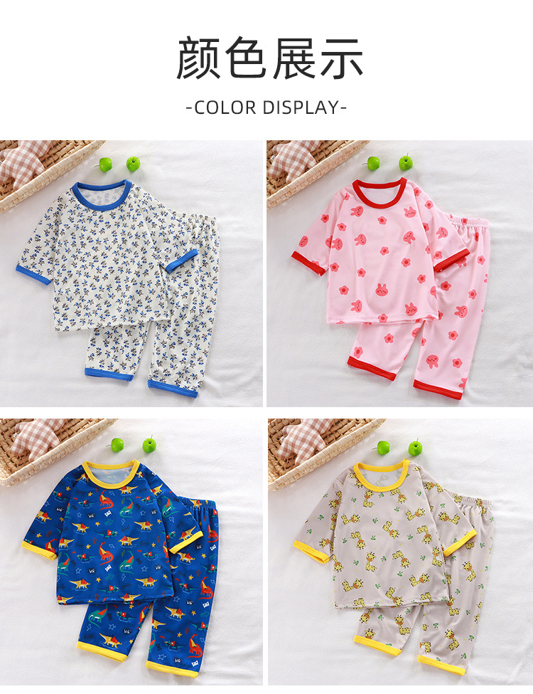 큰 어린이를 위한 에어컨 의류, 7부 소매 가정복, 여아용 아이스 실크 얇은 잠옷, 남성용 정장, 아동복, 목가적 만화스토어 가기