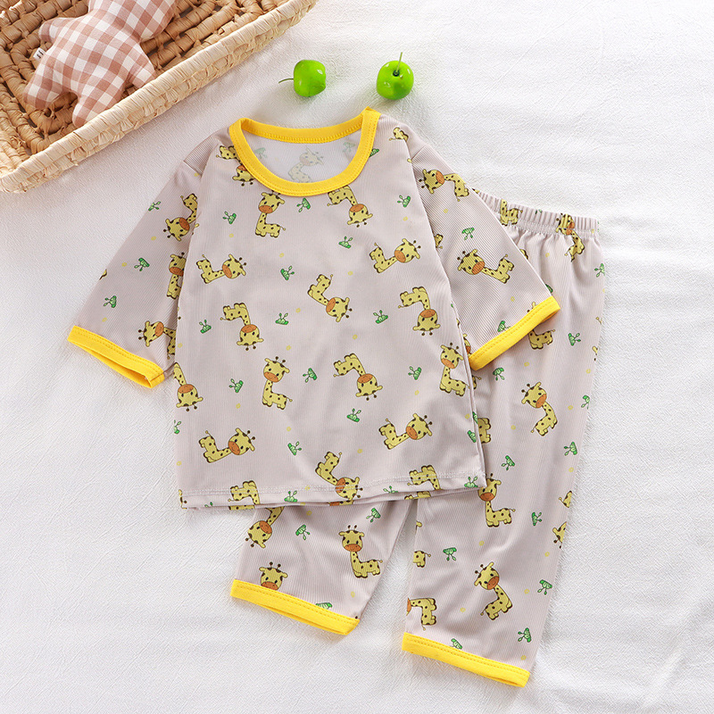 큰 어린이를 위한 에어컨 의류, 7부 소매 가정복, 여아용 아이스 실크 얇은 잠옷, 남성용 정장, 아동복, 목가적 만화