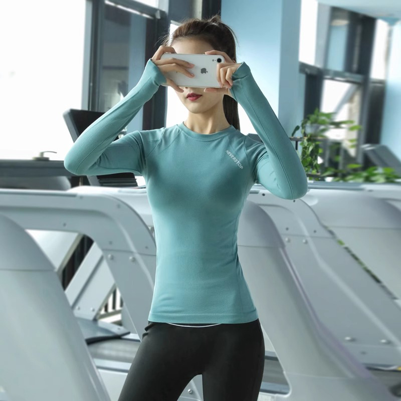 스트레치 타이트한 운동 옷 긴팔 티셔츠 봄과 여름 달리기 훈련 옷 겉옷 바닥 셔츠 스포츠 요가 탑스토어 가기