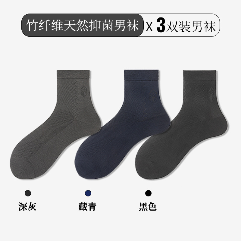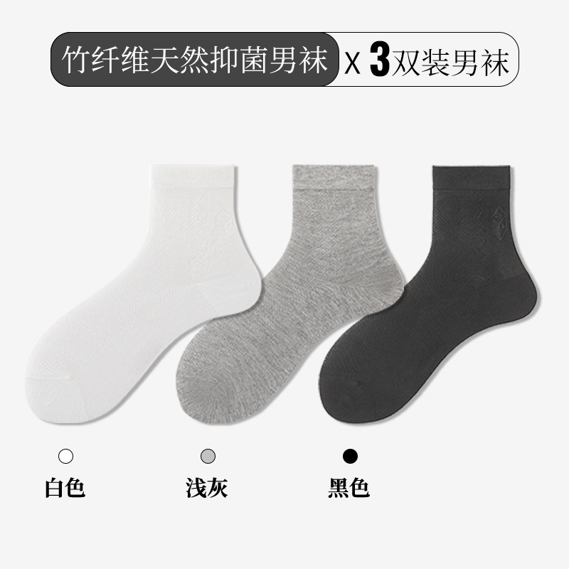 항균 대나무 섬유 양말 남성 봄과 여름 얇은 땀 흡수성 탈취제 스타킹 단색 비즈니스 중반 종아리 길이 양말 국경 대외 무역스토어 가기