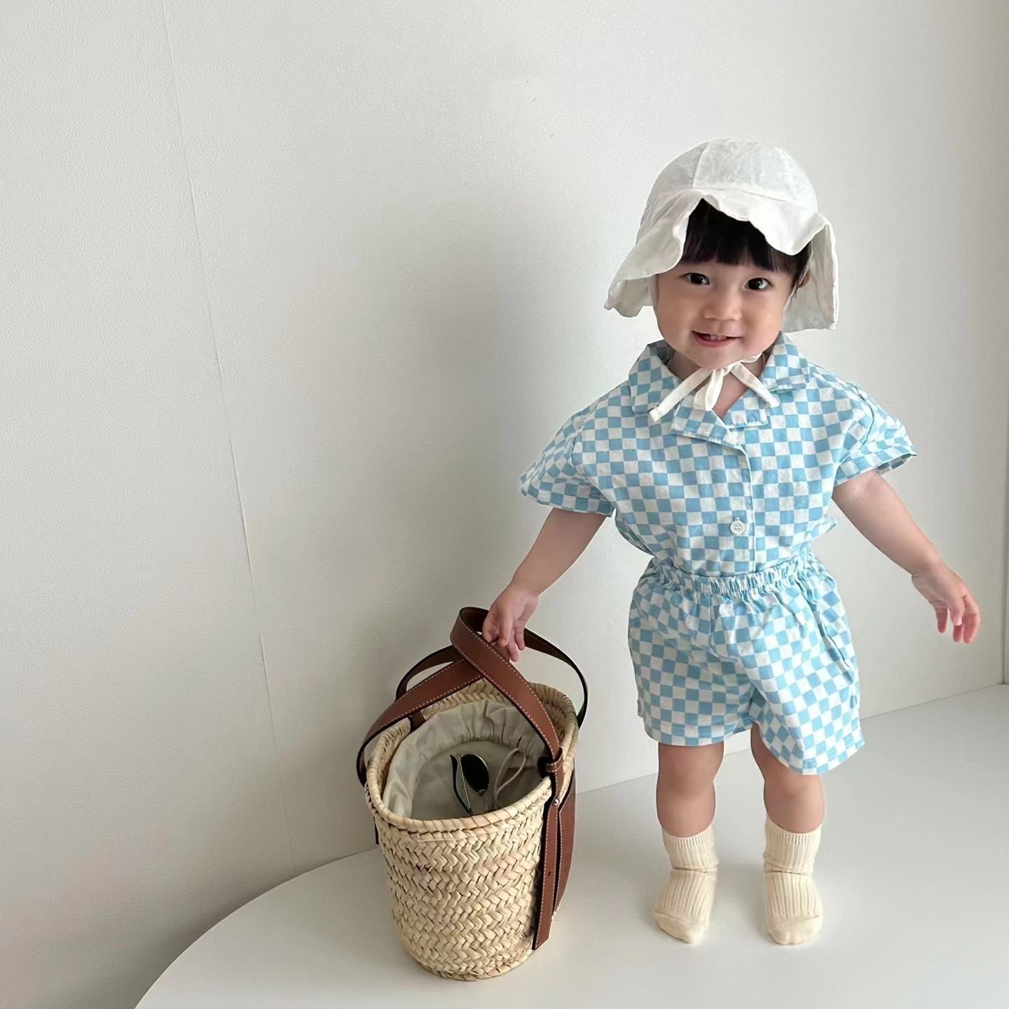 한국식 아기 아동복 귀여운 서양식 폴카 도트 짧은 소매 세트 여름 티셔츠 반바지 투피스 세트스토어 가기
