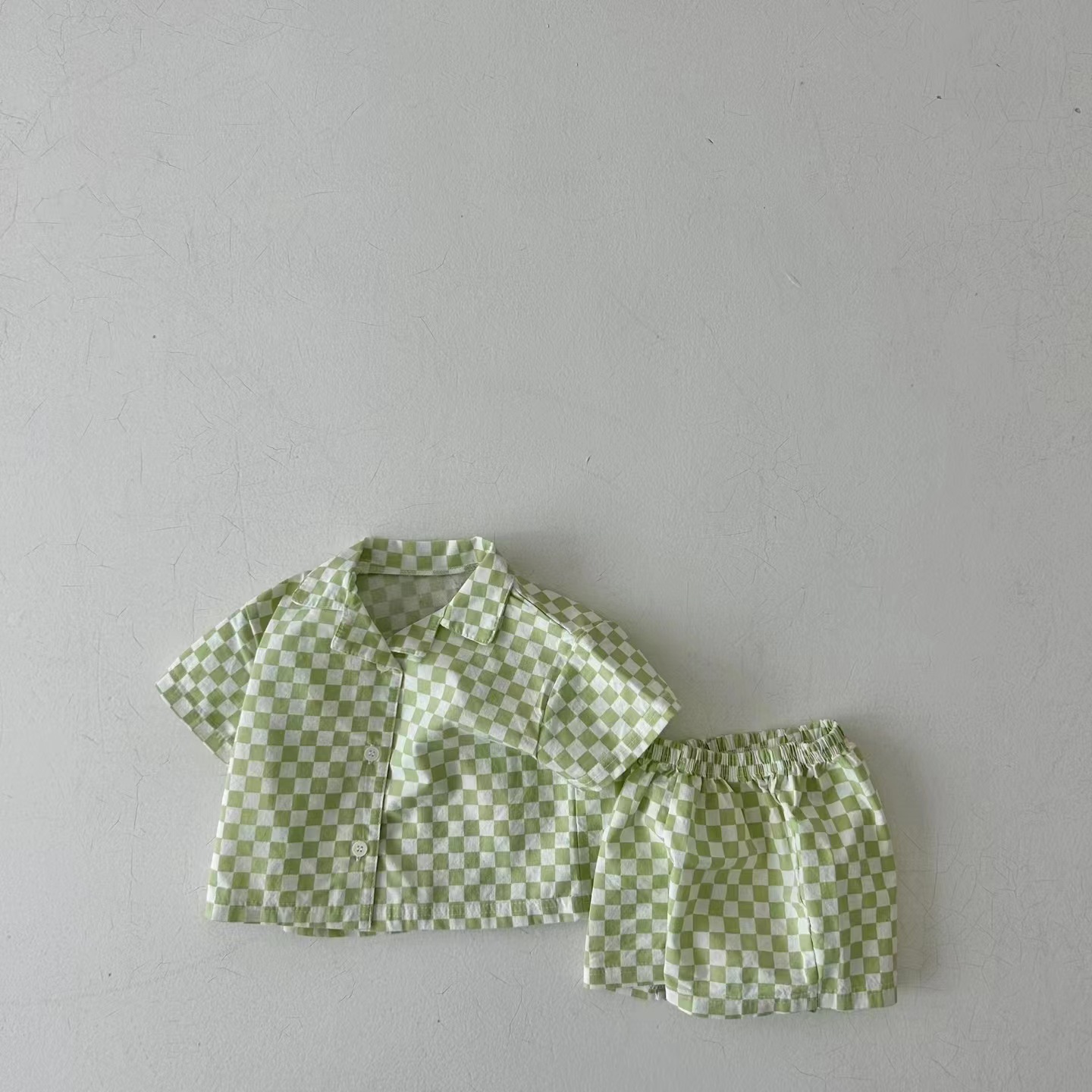 한국식 아기 아동복 귀여운 서양식 폴카 도트 짧은 소매 세트 여름 티셔츠 반바지 투피스 세트