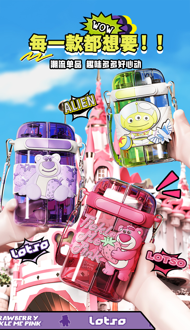쿨로 미 딸기 곰 울트라 맨 어린이 대용량 공간 플라스틱 컵 트리탄 음식 등급 소년 소녀 물 컵스토어 가기