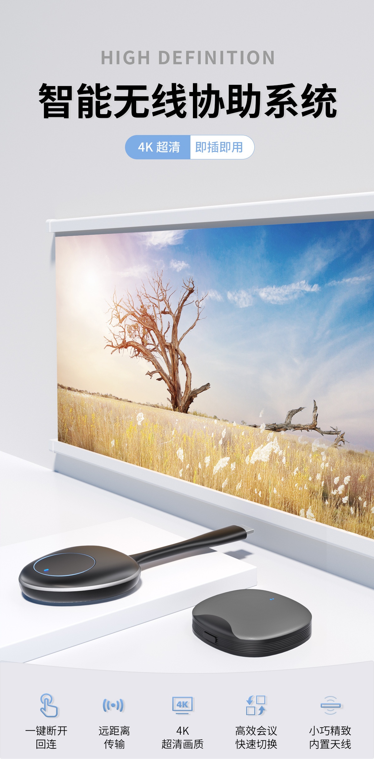 HDMI 무선 동일한 프로젝터 4K HD 포인트 투 포인트 전송 및 프로젝터 디스플레이가있는 노트북 컴퓨터 수신스토어 가기