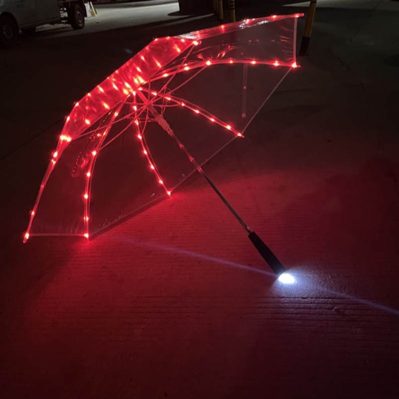 새로운 LED 빛나는 우산 자동 남성과 여성 긴 핸들 손전등 우산 사진 무대 바 성능 소품 투명 우산