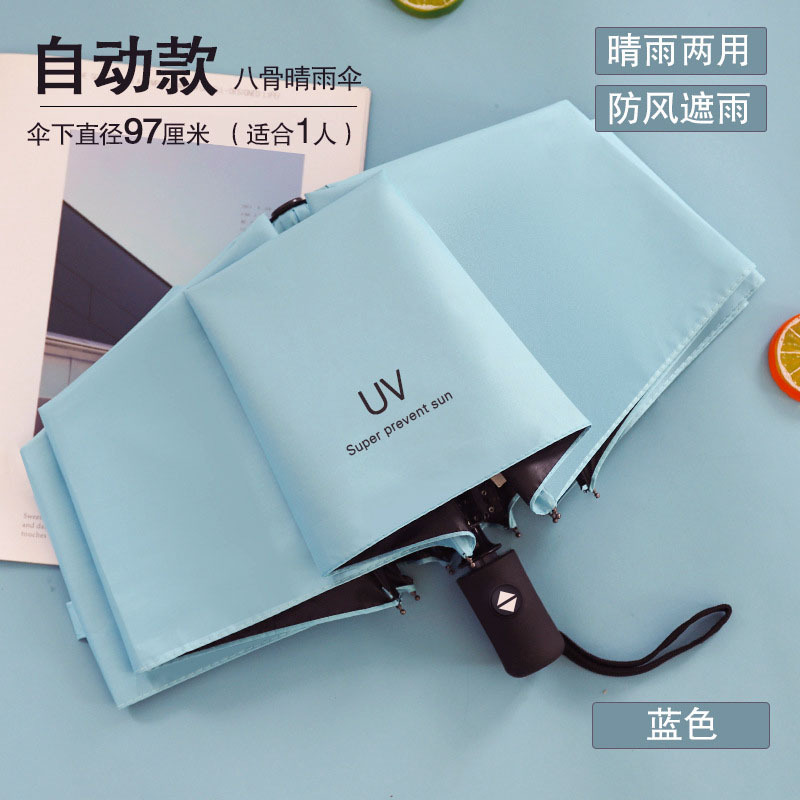 • 스카이 블루 [8 본 자동 우산] 맑고 비오는 이중 사용 * 검은 접착제 태양 보호