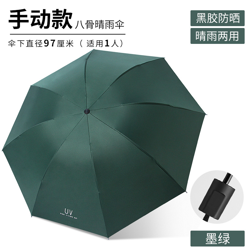 • [8-뼈 uv 수동 우산] 맑고 비오는 이중 사용 * 검은 접착제 태양 보호-다크 그린