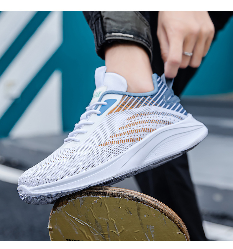 2024 새로운 캐주얼 남성 신발 비행 짠 메쉬 표면 경량 패션 단일 신발 속이 빈 간단한 남성 운동화 국경 도매스토어 가기