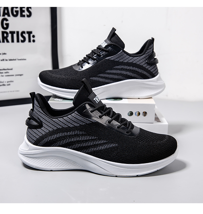 2024 새로운 캐주얼 남성 신발 비행 짠 메쉬 표면 경량 패션 단일 신발 속이 빈 간단한 남성 운동화 국경 도매