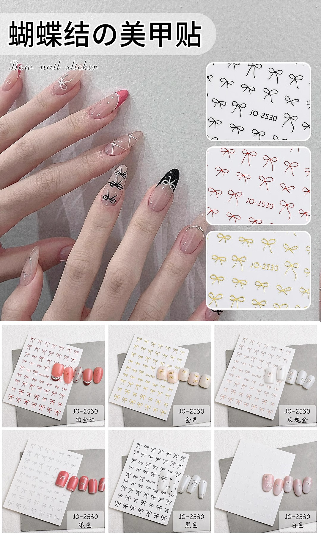 리본 매니큐어 스티커 2025 신상 흑백 금은 빨강 리본 매니큐어 스티커 인기 제품