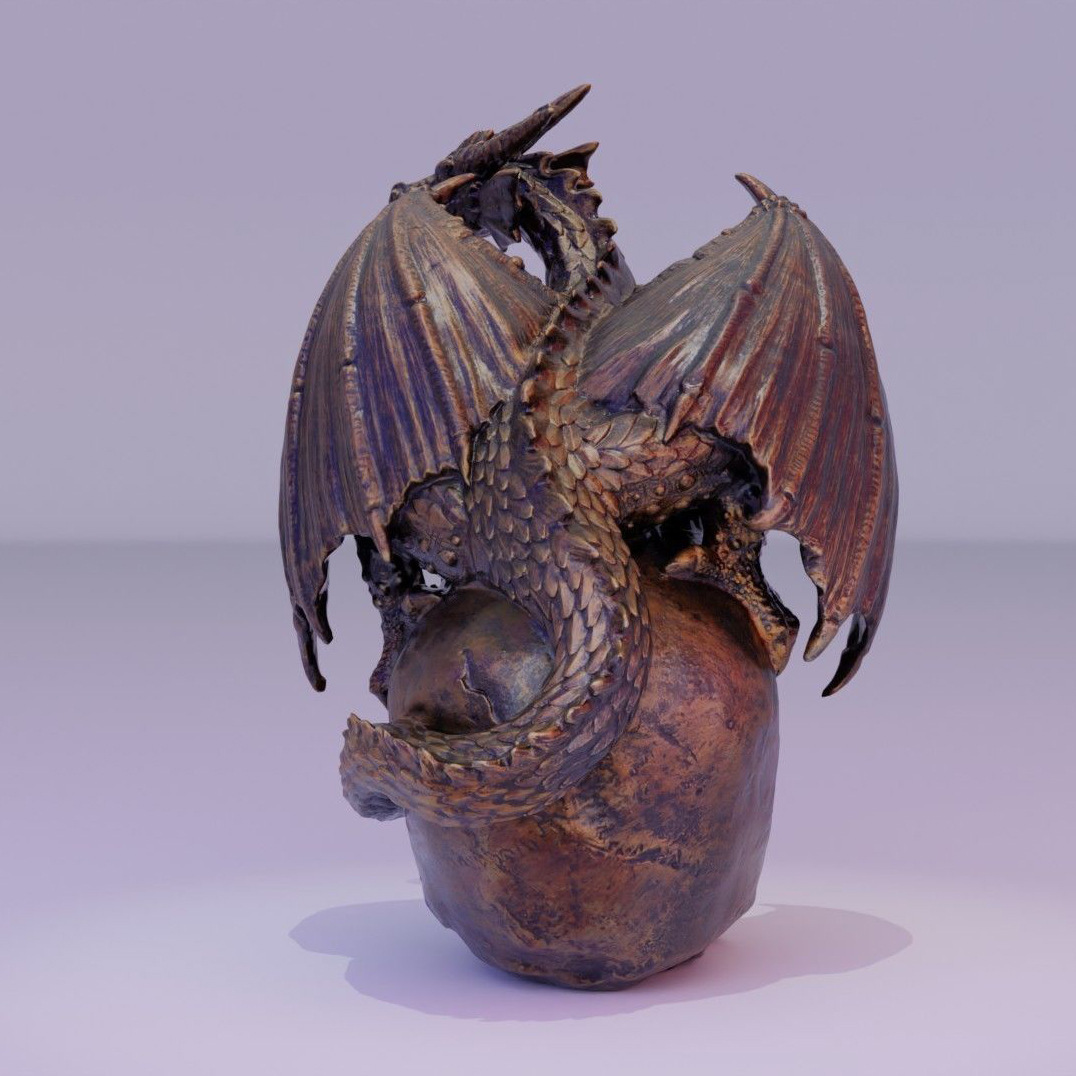 跨境新品飞龙骷髅头雕像树脂工艺品摆件
