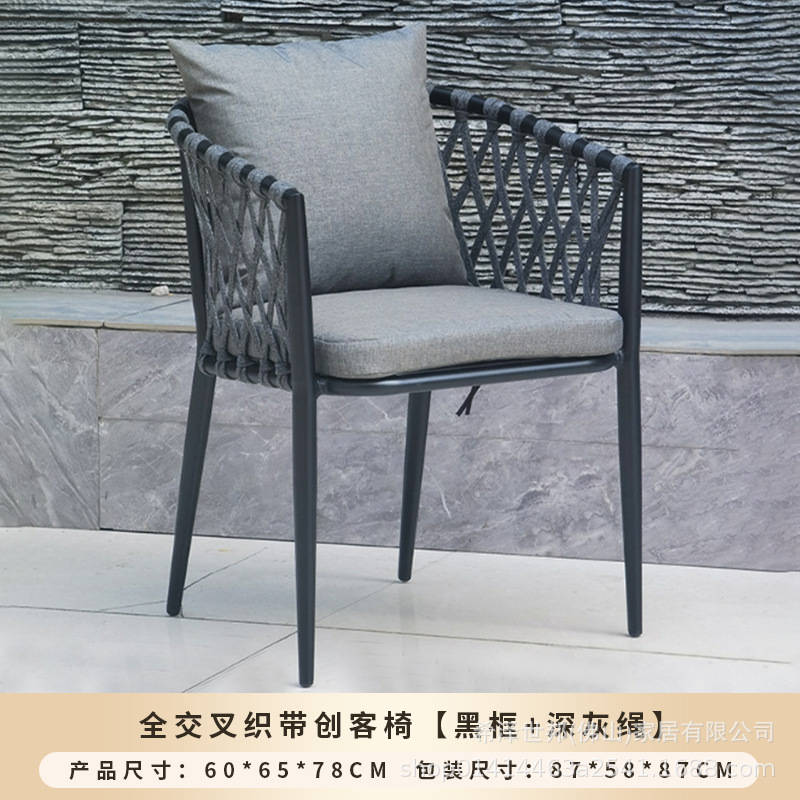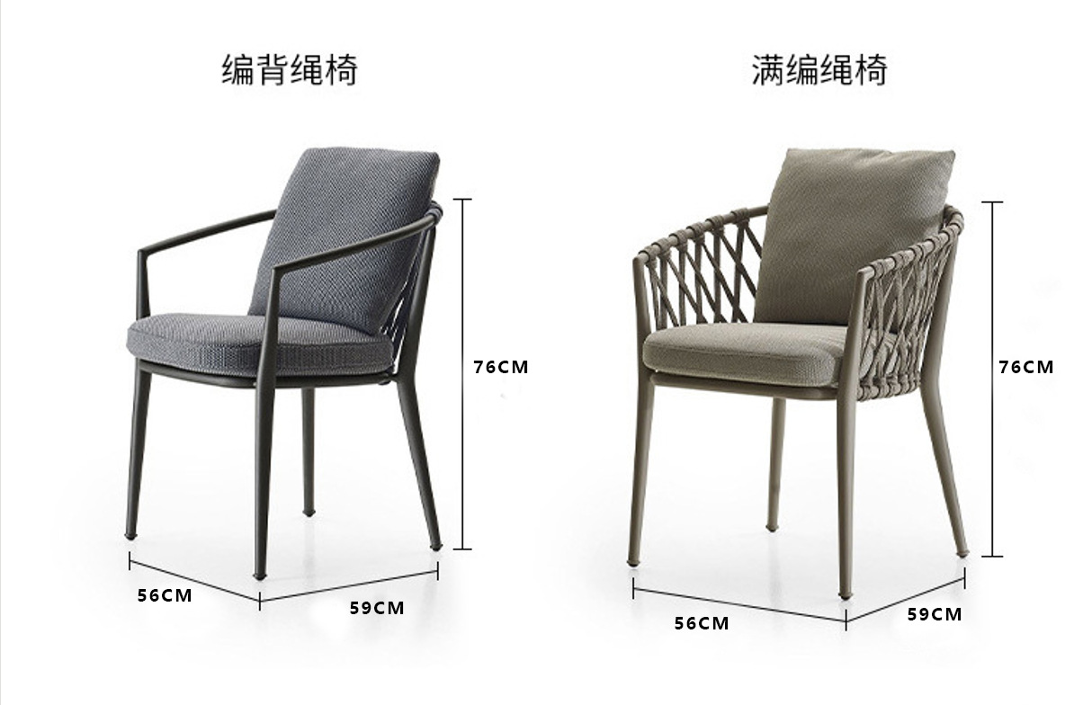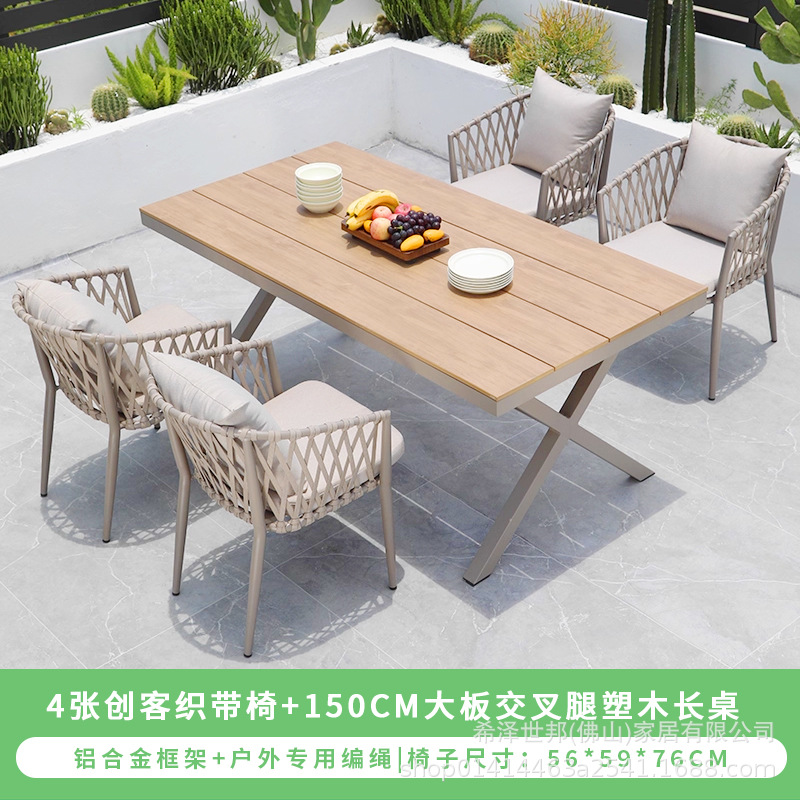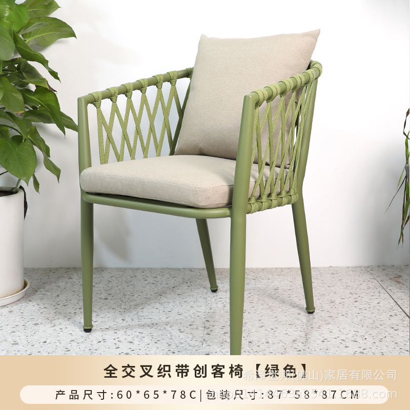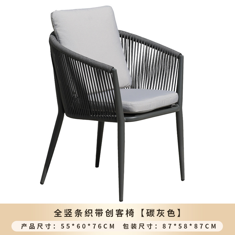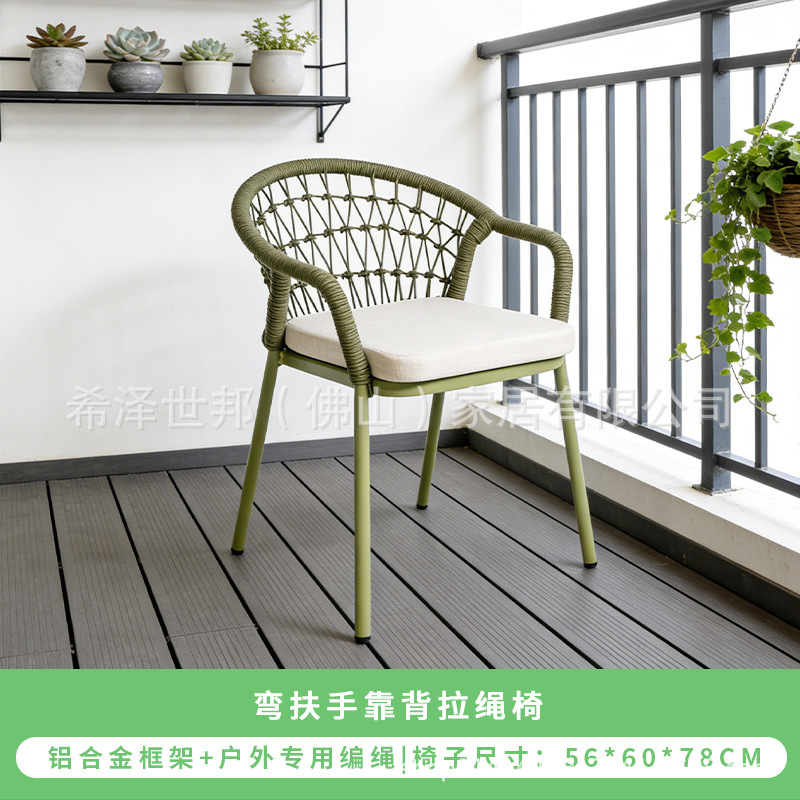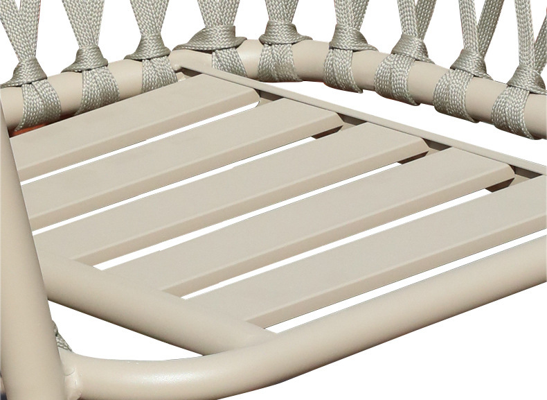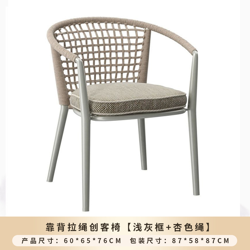 야외 맞춤형 가정용 발코니 식탁 의자, 북유럽 스타일 등받이가 있는 레저 레스토랑 알루미늄 프레임 끈으로 엮은 테이블과 의자