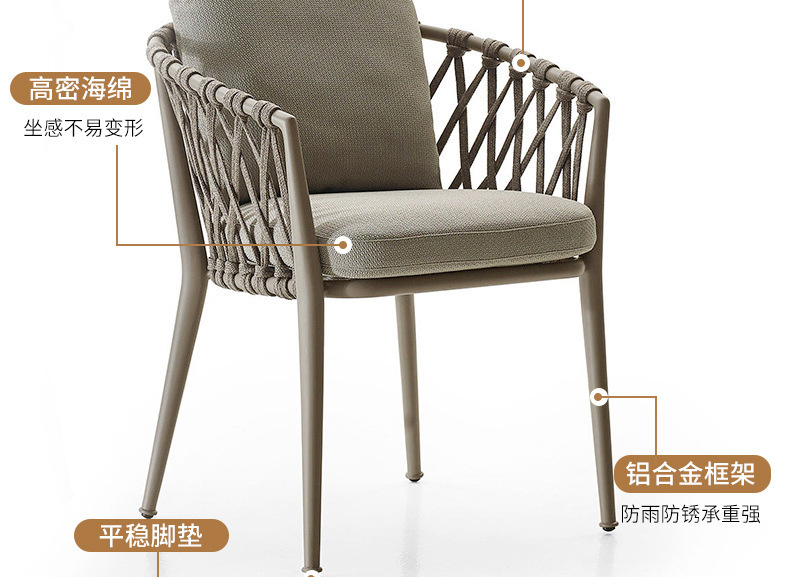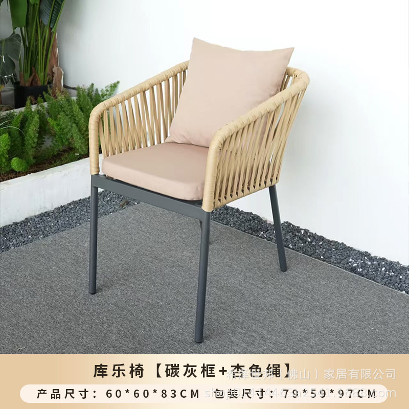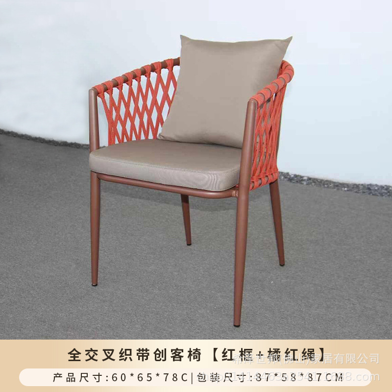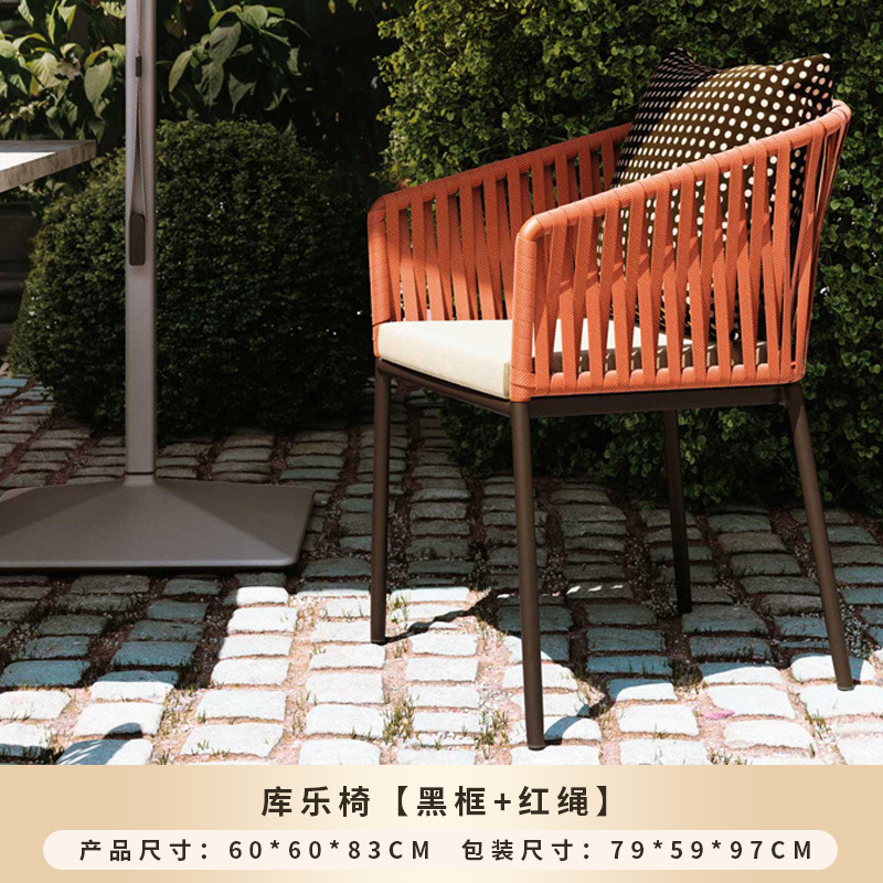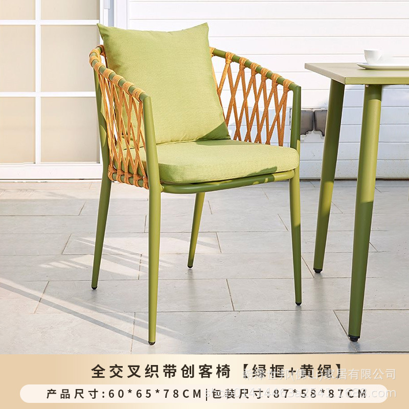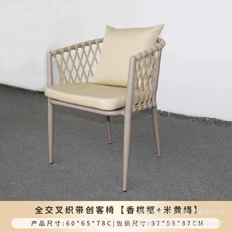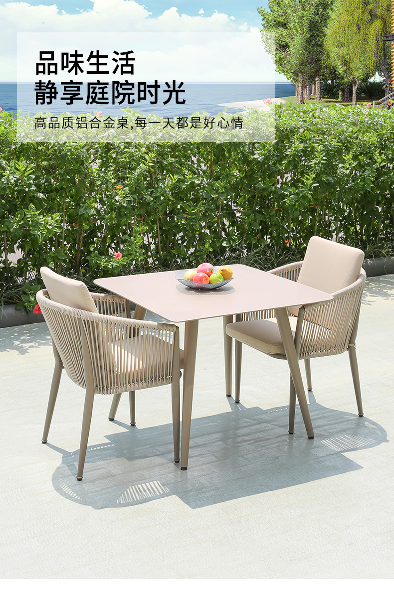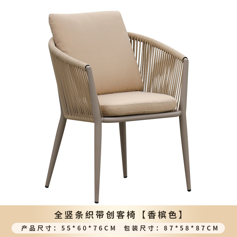 야외 맞춤형 가정용 발코니 식탁 의자, 북유럽 스타일 등받이가 있는 레저 레스토랑 알루미늄 프레임 끈으로 엮은 테이블과 의자