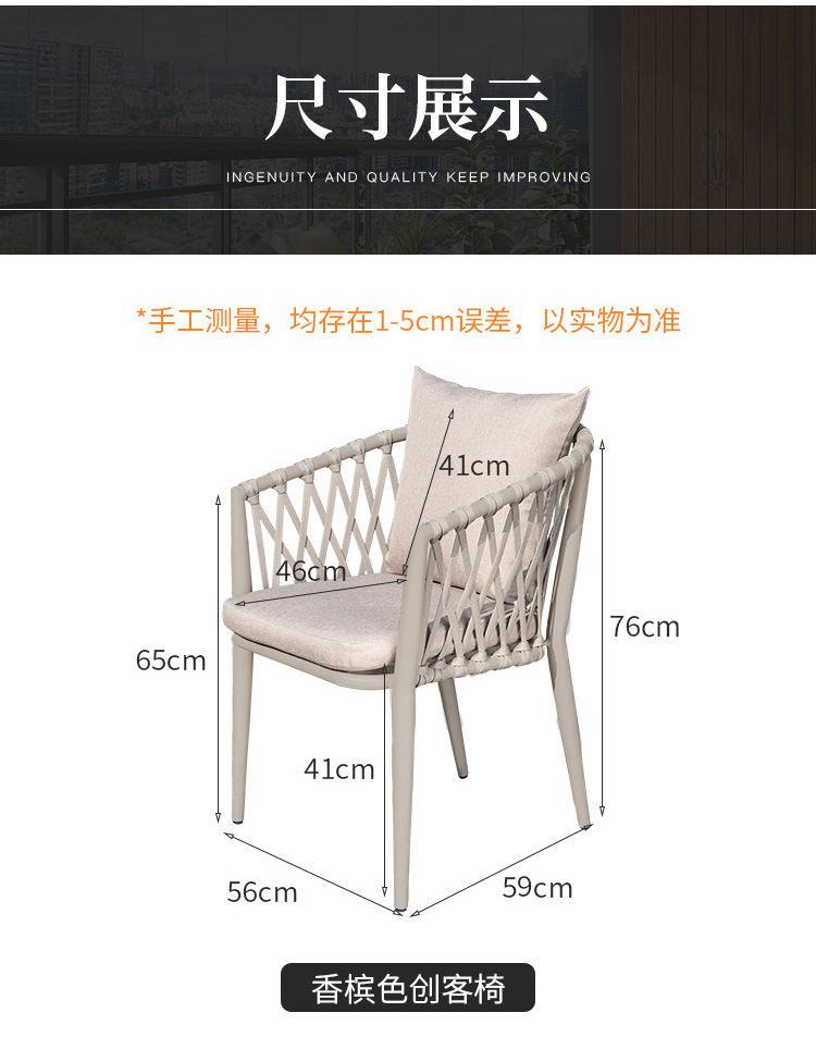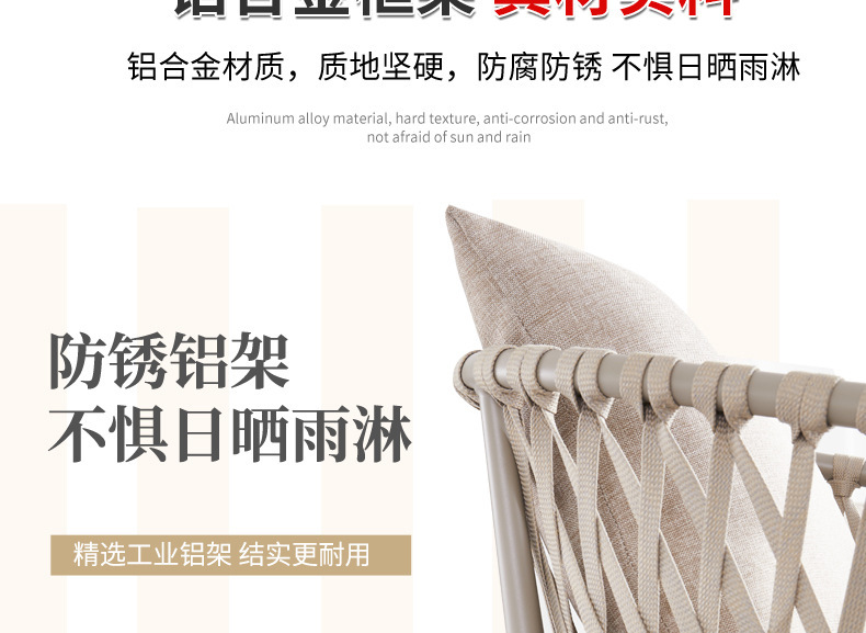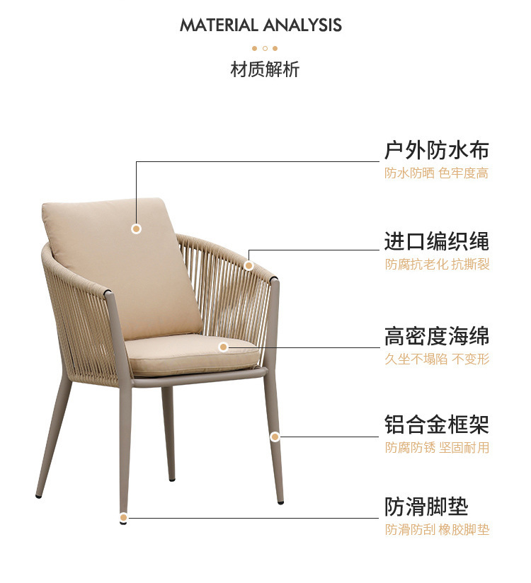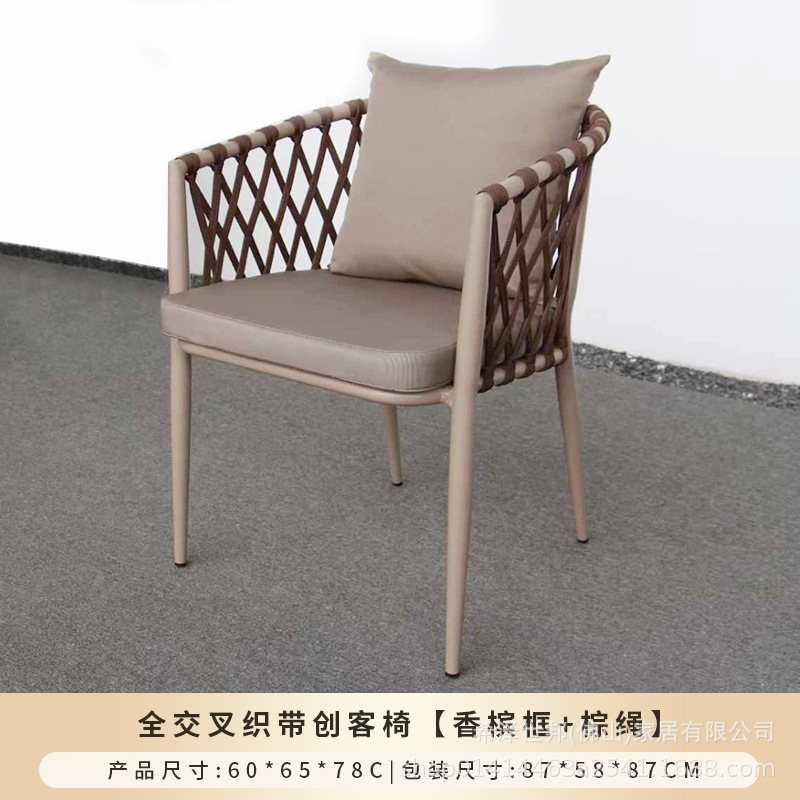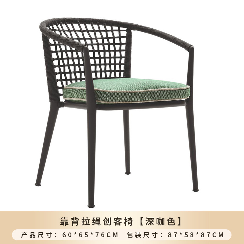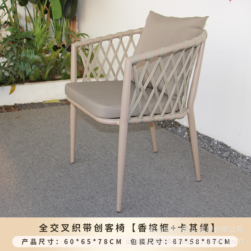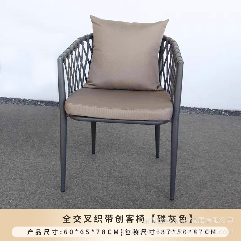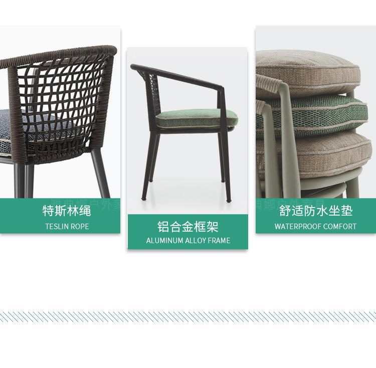 야외 맞춤형 가정용 발코니 식탁 의자, 북유럽 스타일 등받이가 있는 레저 레스토랑 알루미늄 프레임 끈으로 엮은 테이블과 의자