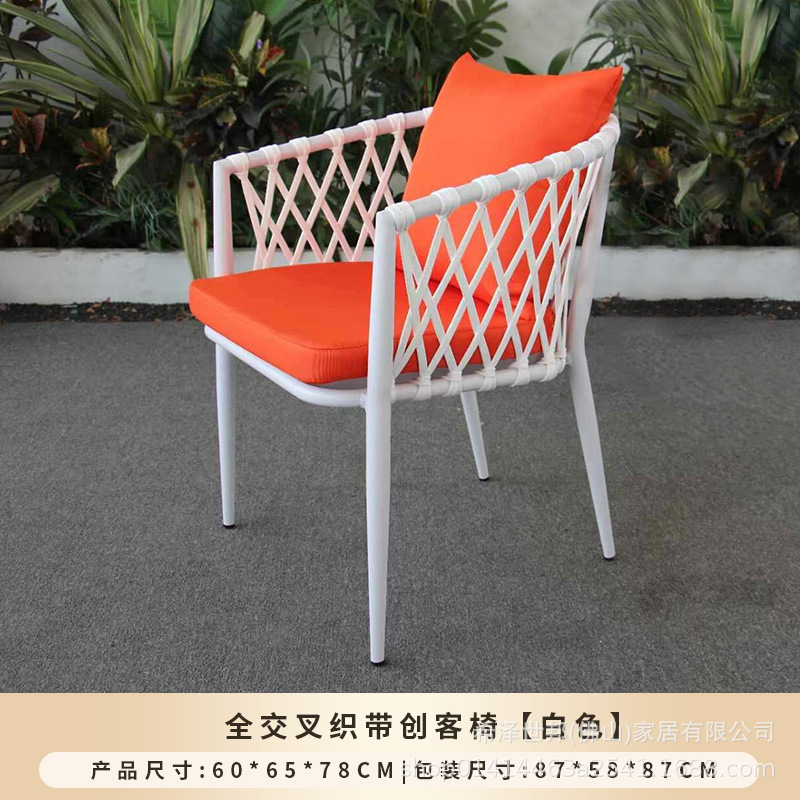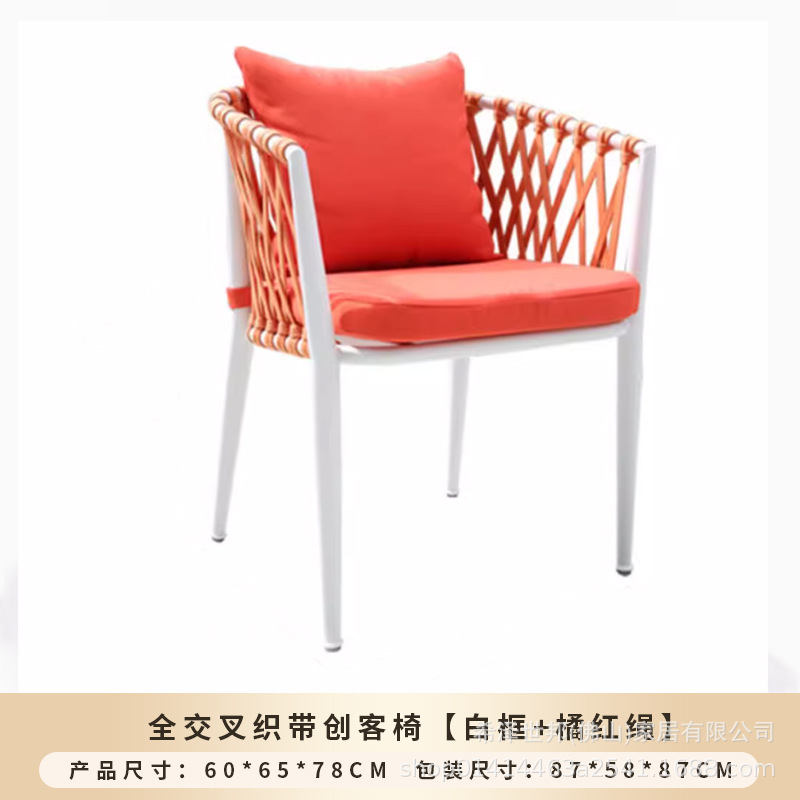 • 메이커 웨빙 의자 [화이트 프레임 + 오렌지 레드 로프] - 맞춤형