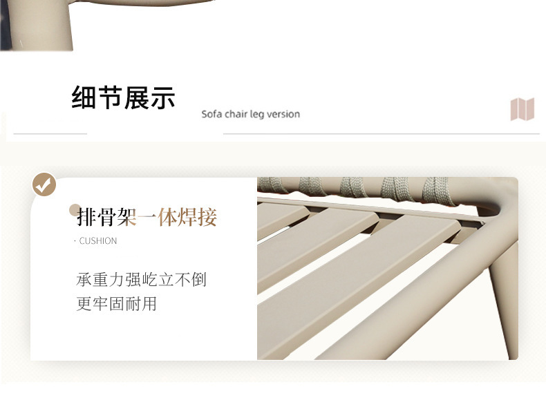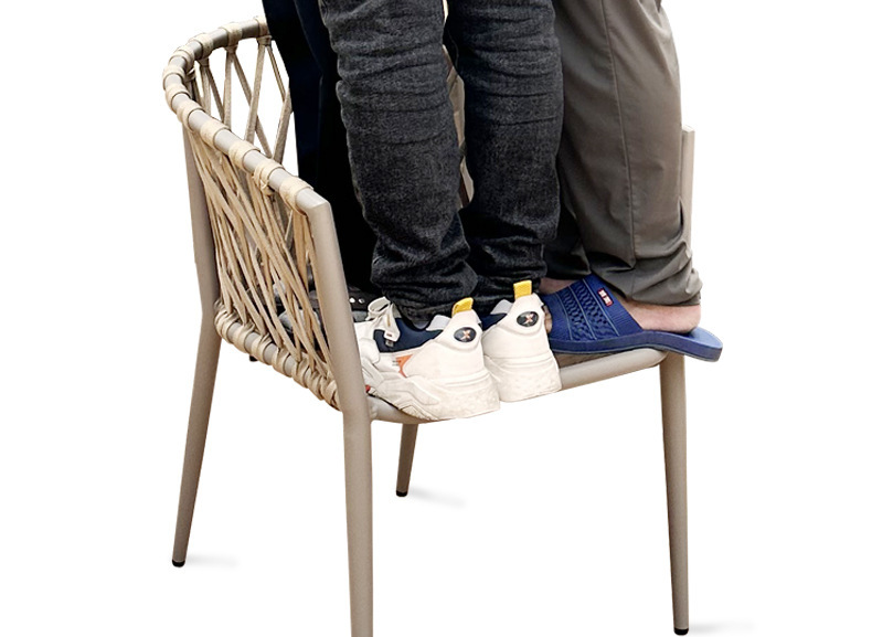 • 등받이 조임끈 디자이너 의자 [라이트 그레이 프레임 + 살구색 로프] - 맞춤형