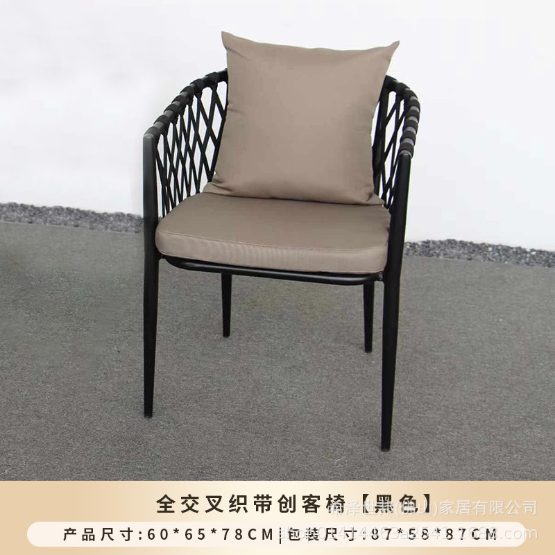 • 메이커 웨빙 의자 [블랙 프레임 + 다크 그레이 로프] - 맞춤형