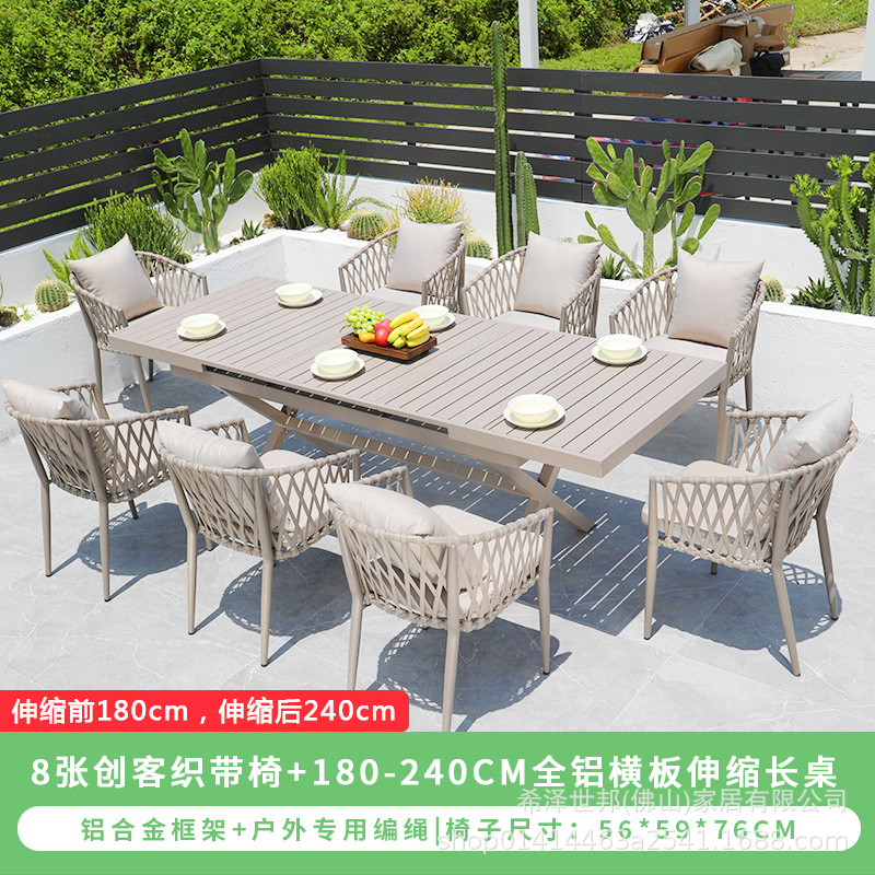 • 8개의 메이커 웨빙 의자 + 180-240CM 전체 알루미늄 수평 패널 텔레스코픽 긴 테이블