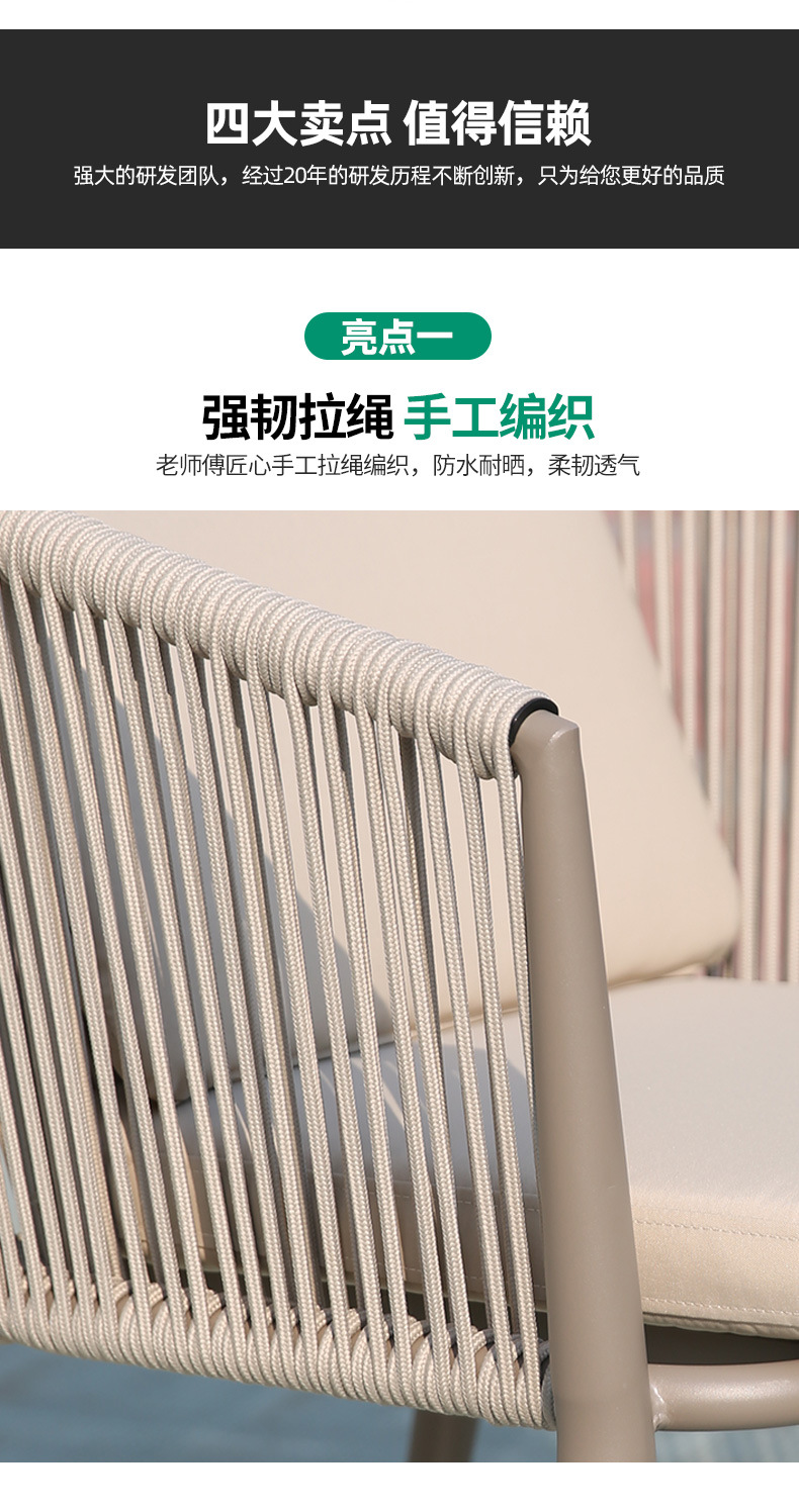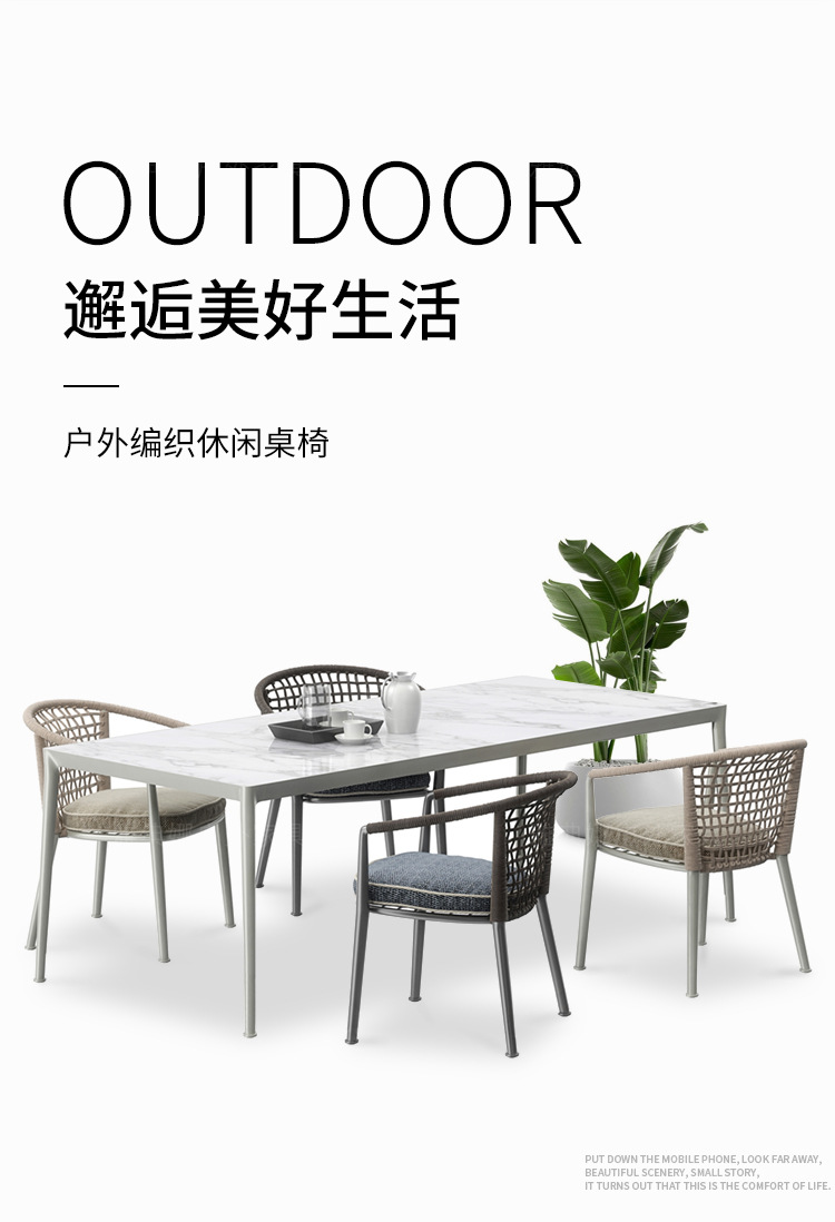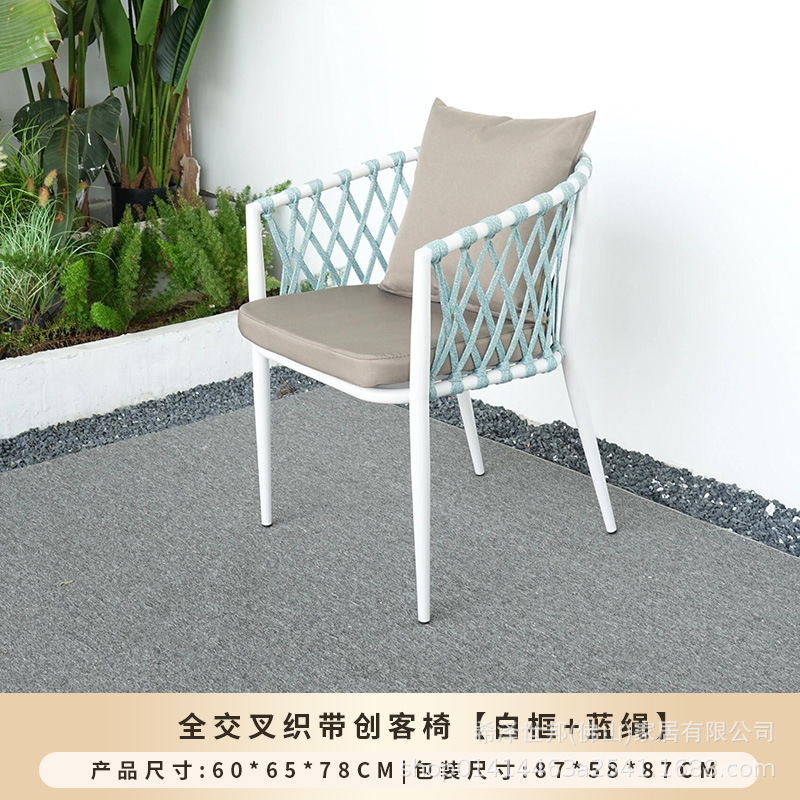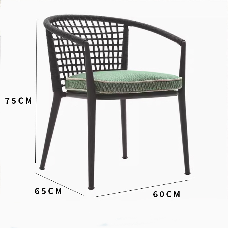 야외 맞춤형 가정용 발코니 식탁 의자, 북유럽 스타일 등받이가 있는 레저 레스토랑 알루미늄 프레임 끈으로 엮은 테이블과 의자스토어 가기