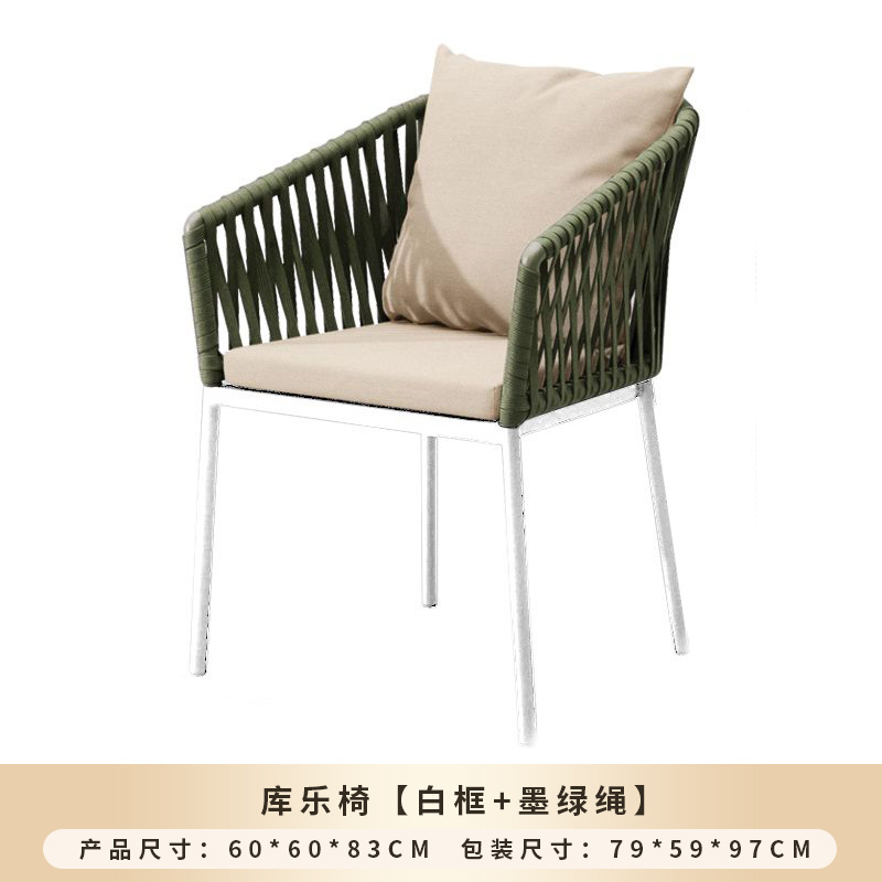 • 쿠러 직조 의자 [화이트 프레임 + 다크 그린 로프] - 맞춤 제작
