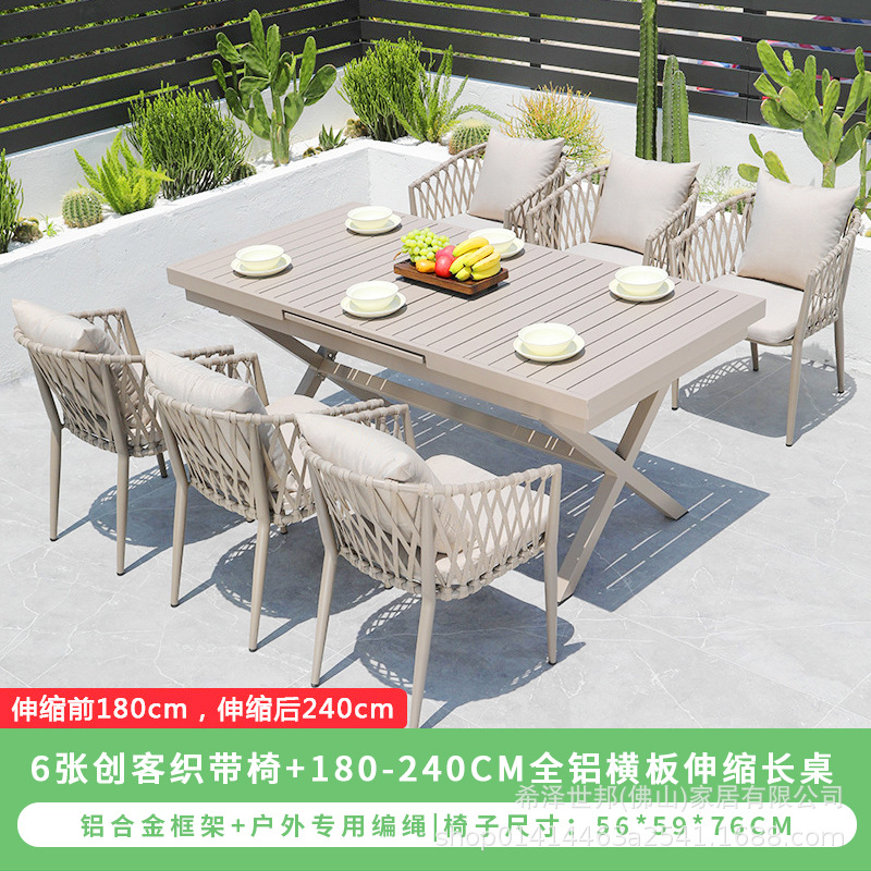 • 메이커 웨빙 의자 6개 + 180-240CM 전체 알루미늄 수평 패널 텔레스코픽 긴 테이블