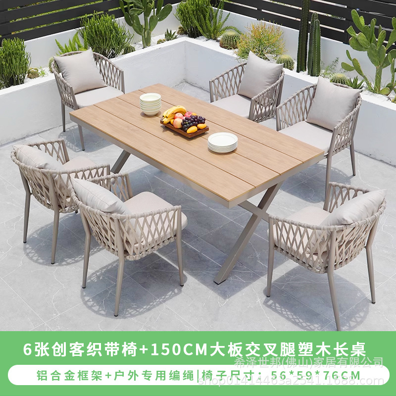 • 메이커 웨빙 의자 6개 + 150CM 대형 크로스 레그 플라스틱 목재 긴 테이블