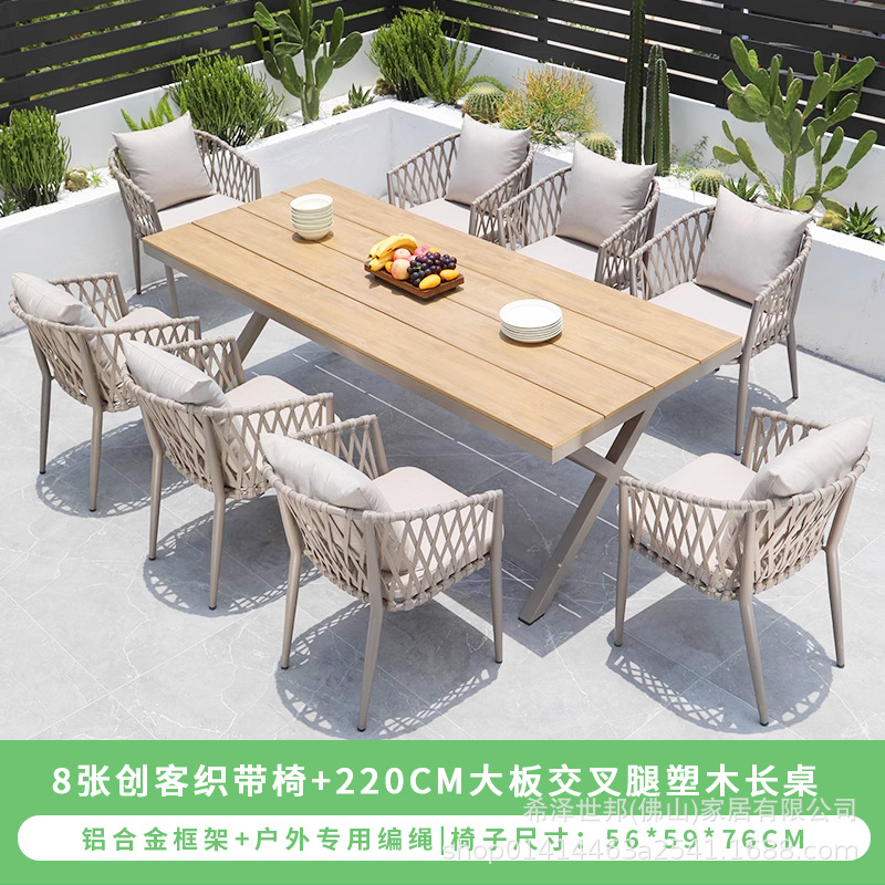 • 메이커 웨빙 의자 8개 + 220CM 대형 크로스 레그 플라스틱 목재 긴 테이블