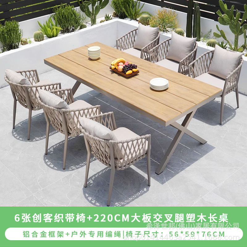 • 메이커 웨빙 의자 6개 + 220CM 대형 크로스 레그 플라스틱 목재 긴 테이블
