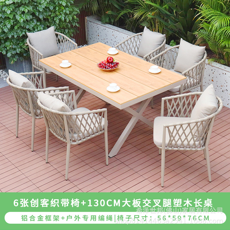 • 메이커 웨빙 의자 6개 + 130CM 대형 크로스 레그 플라스틱 목재 긴 테이블
