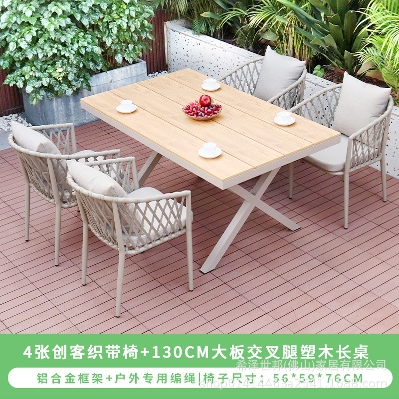 • 메이커 웨빙 의자 4개 + 130CM 대형 크로스 레그 플라스틱 목재 긴 테이블