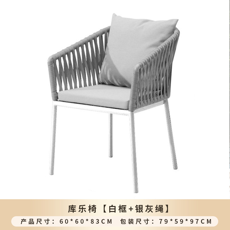 • 쿠레 직조 의자 [화이트 프레임 + 실버 그레이 로프] - 맞춤 제작