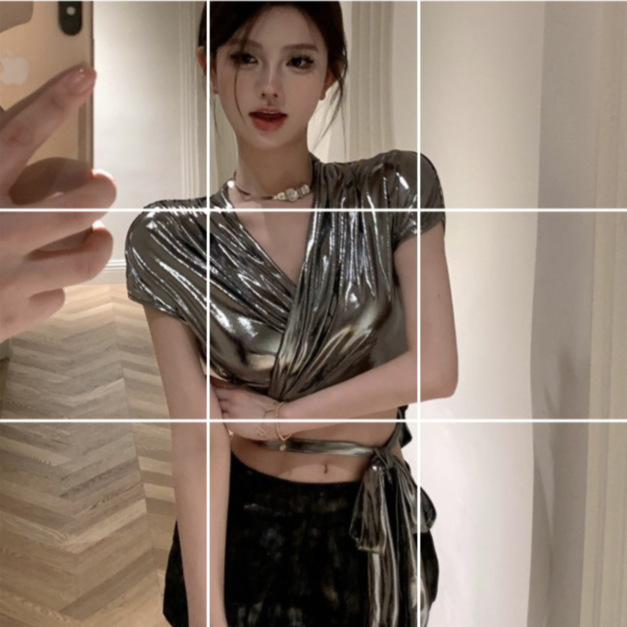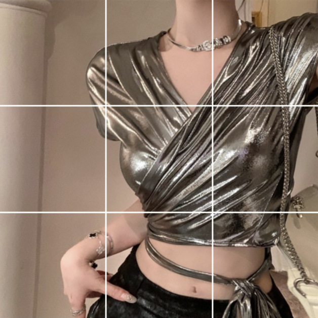 실버 반팔 브이넥 티셔츠 여성용 여름 핫 걸 섹시 스트랩 쇼트탑 5183 스트랩 반팔 셔츠