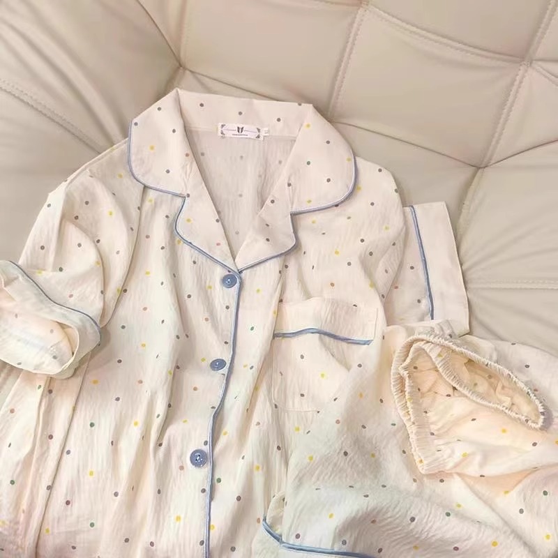 여름 뉴 인 스타일 한국 스타일 신선한 폴카 도트 짧은 소매 파자마 바지 달콤한 학생 홈웨어