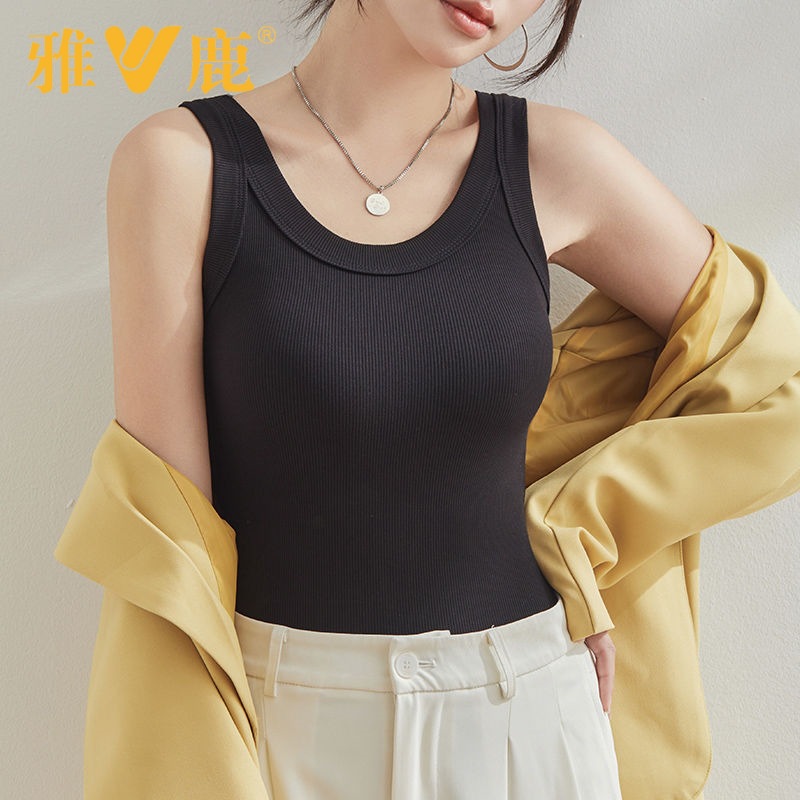 얄루 여름 여성 조끼 단색 민소매 슬림 핏 캐미솔 내부 섹시한 노출 방지 실 바닥 셔츠스토어 가기
