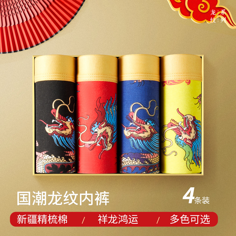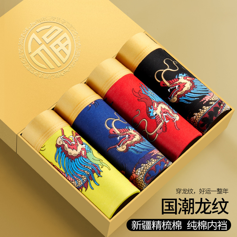 브랜드 남성 속옷 남성용 사각팬티 용의 해 용무늬 프린트 디자인 7A 항균 사각팬츠 순면 가랑이스토어 가기