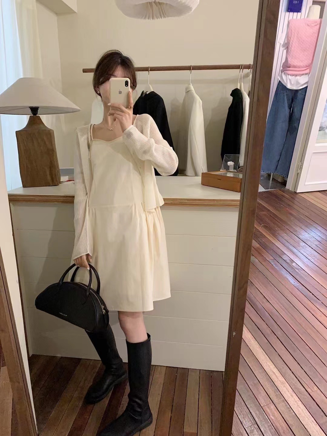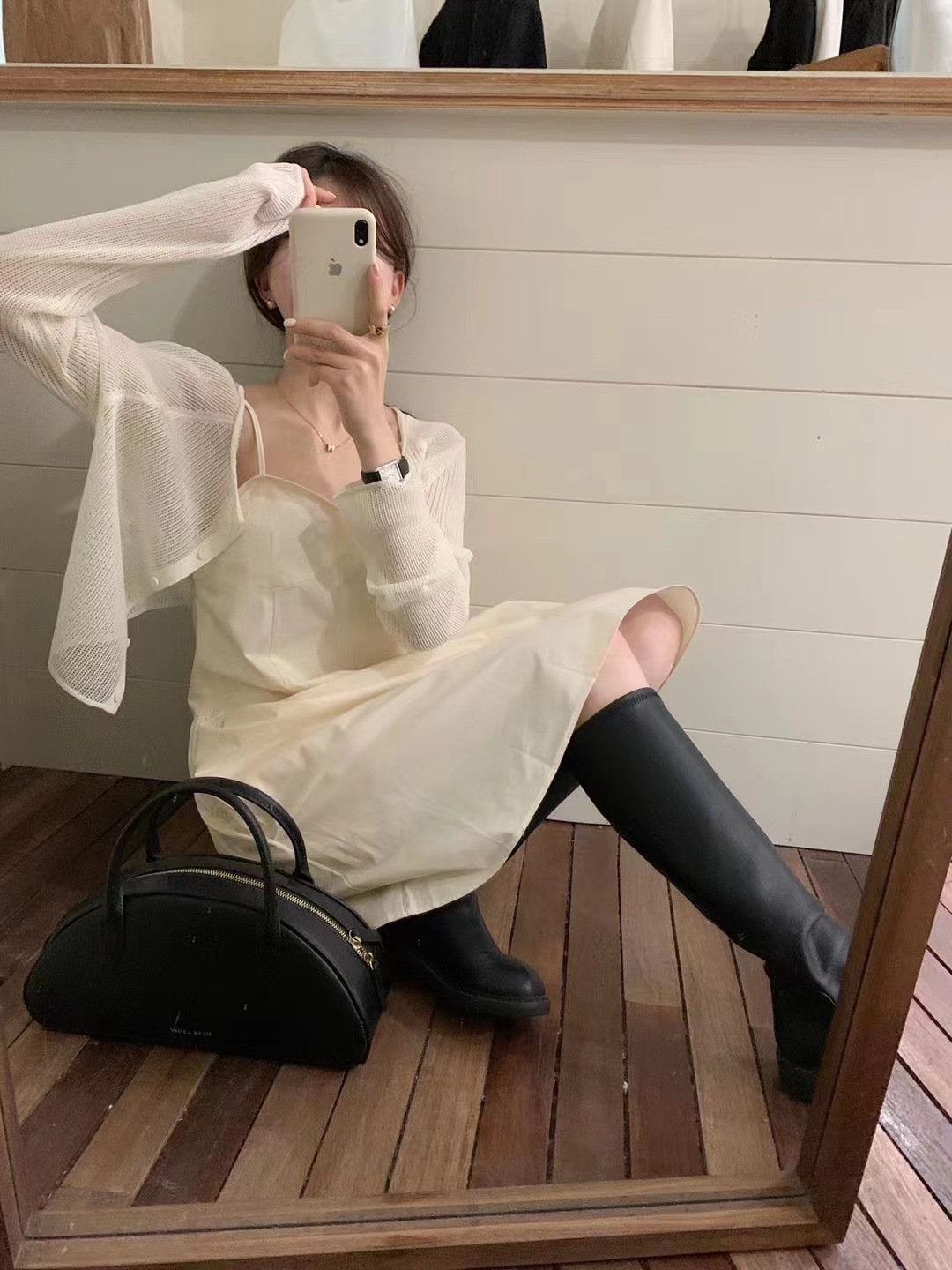 米白色苎麻长袖法式小坎肩搭配吊带连衣裙子小开衫防晒衣空调衫夏
