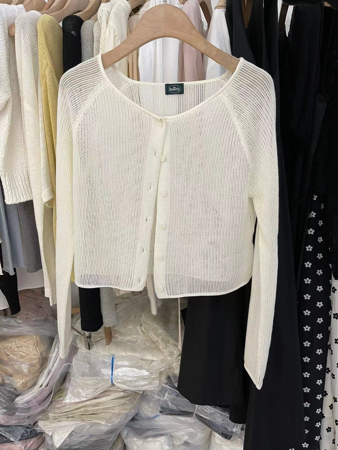 아이보리 라미 긴 소매 프랑스 스타일의 작은 양복 조끼 슬링 스웨터 작은 카디건 태양 보호 의류 에어컨 셔츠 여름스토어 가기