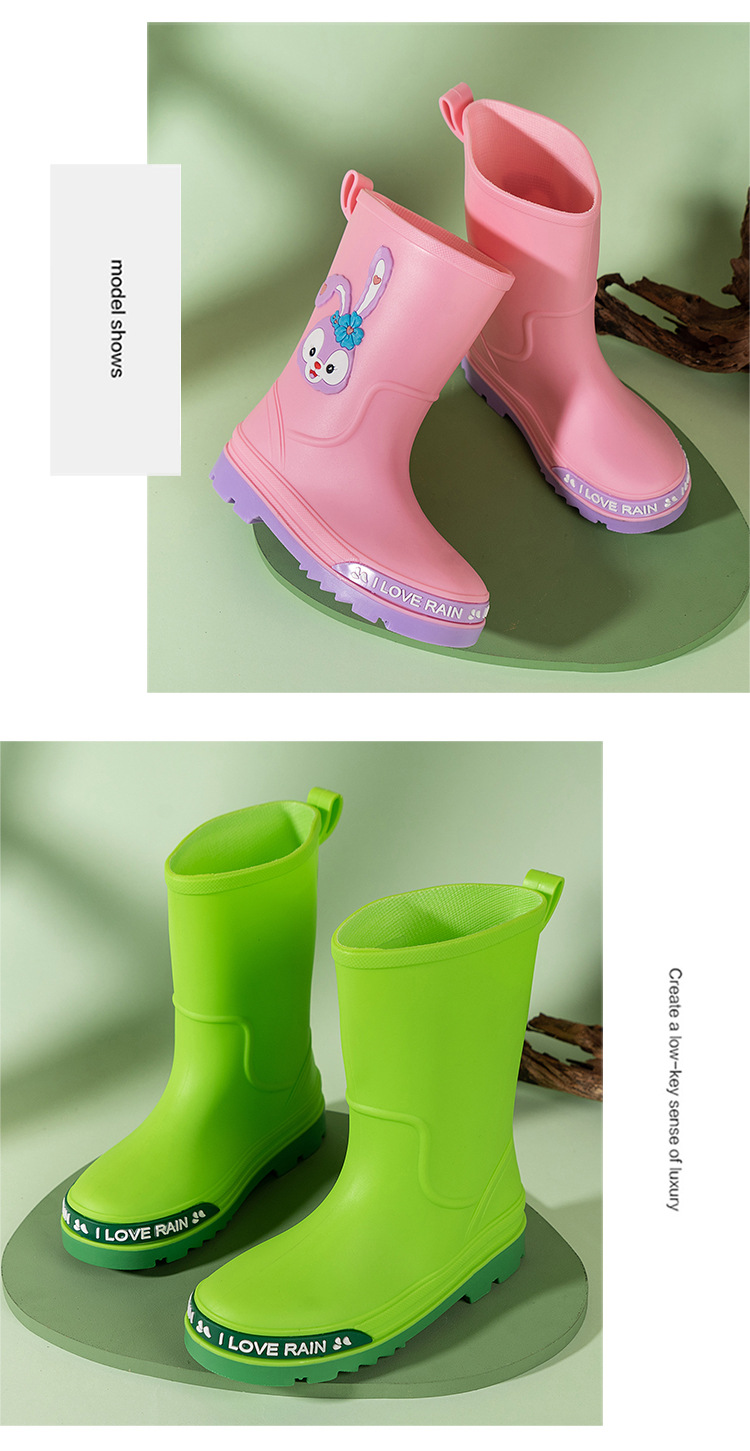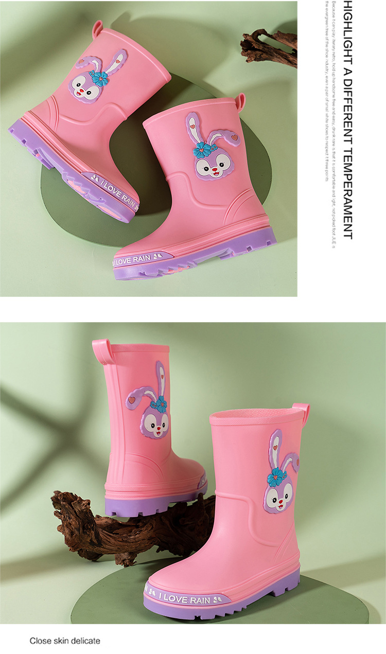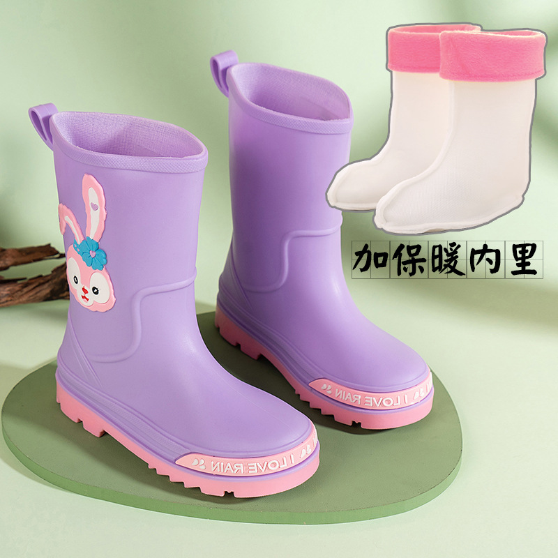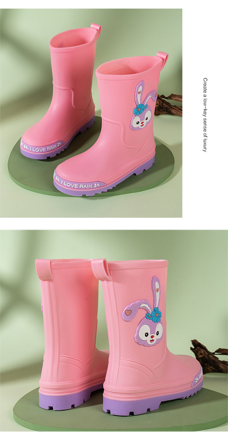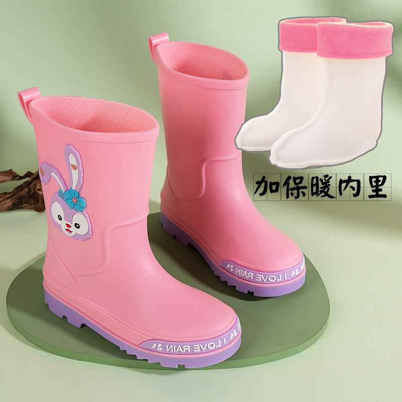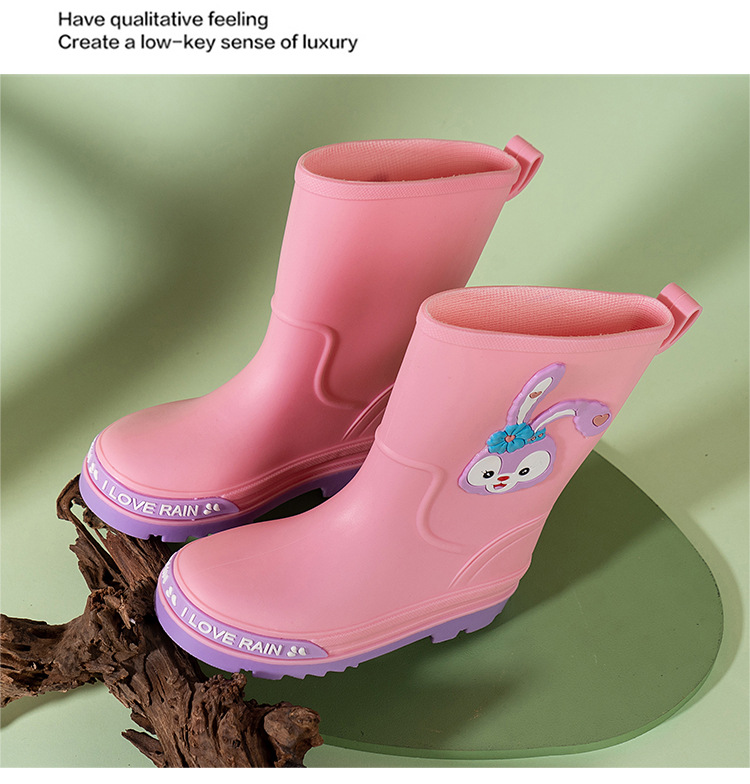 어린이 장화 중반 송아지 방수 부츠 고무 신발 패션 만화 어린이 미끄럼 방지 두꺼운 귀여운 공주 소년과 소녀 아기