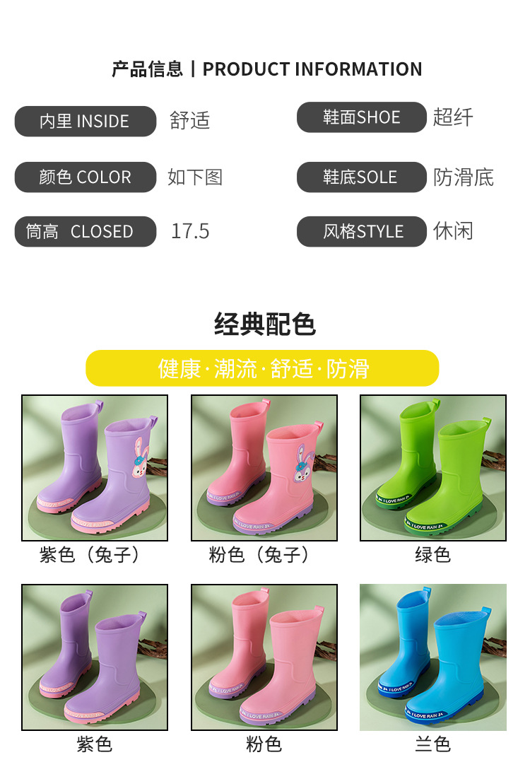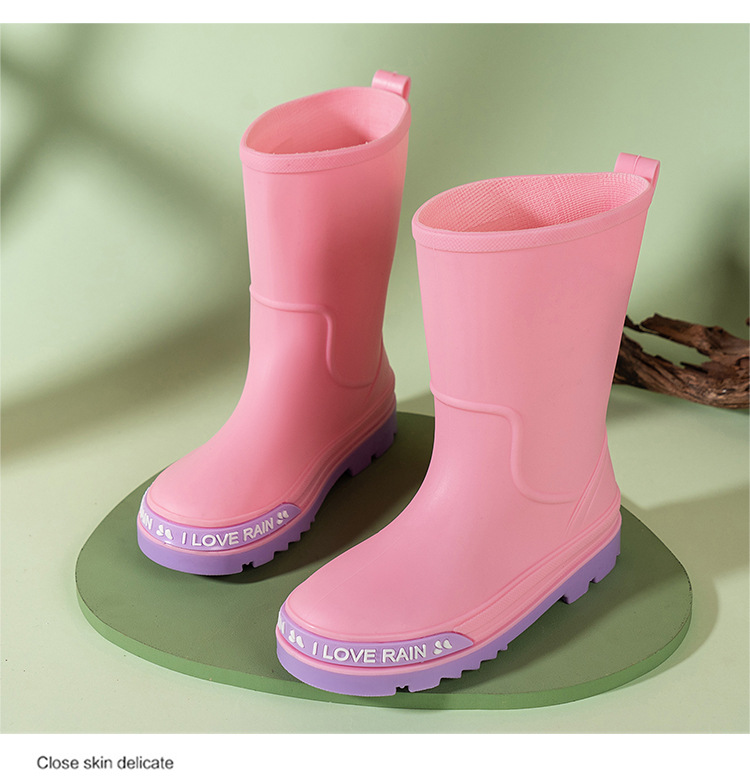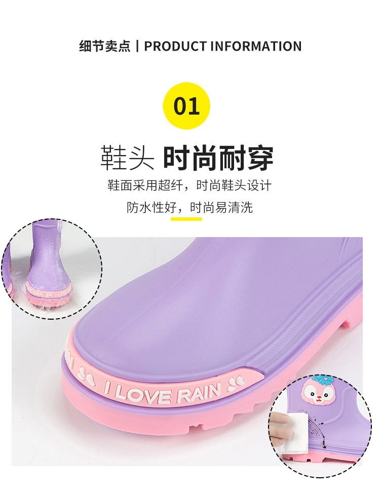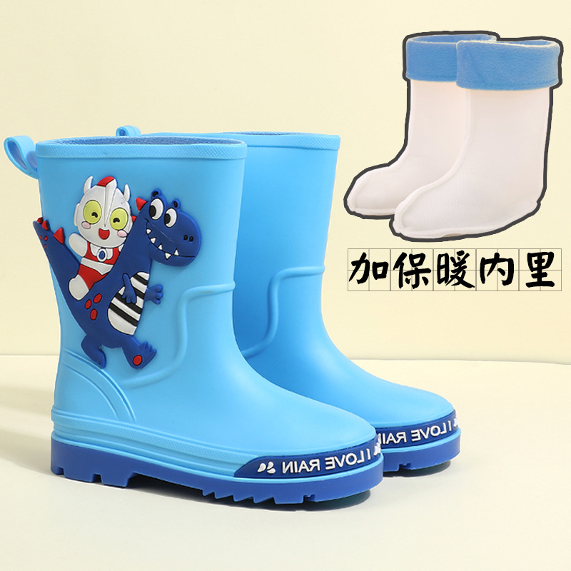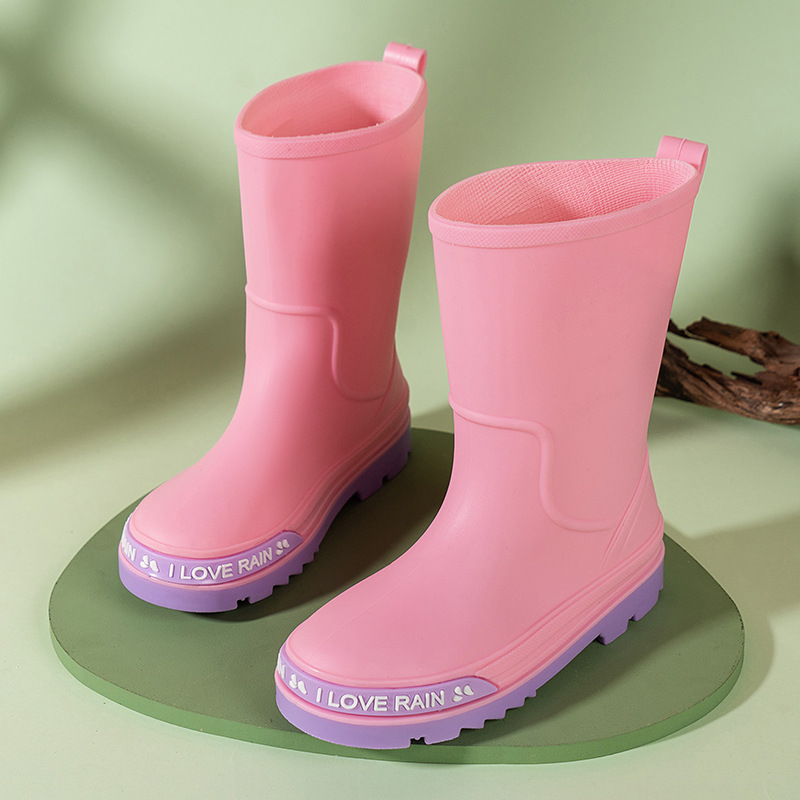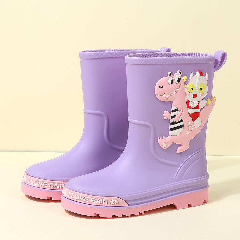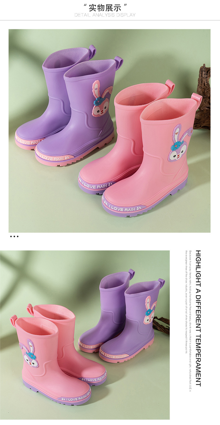어린이 장화 중반 송아지 방수 부츠 고무 신발 패션 만화 어린이 미끄럼 방지 두꺼운 귀여운 공주 소년과 소녀 아기