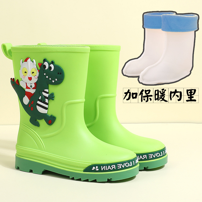 어린이 장화 중반 송아지 방수 부츠 고무 신발 패션 만화 어린이 미끄럼 방지 두꺼운 귀여운 공주 소년과 소녀 아기스토어 가기