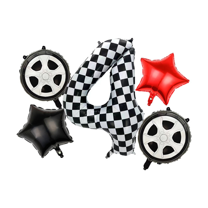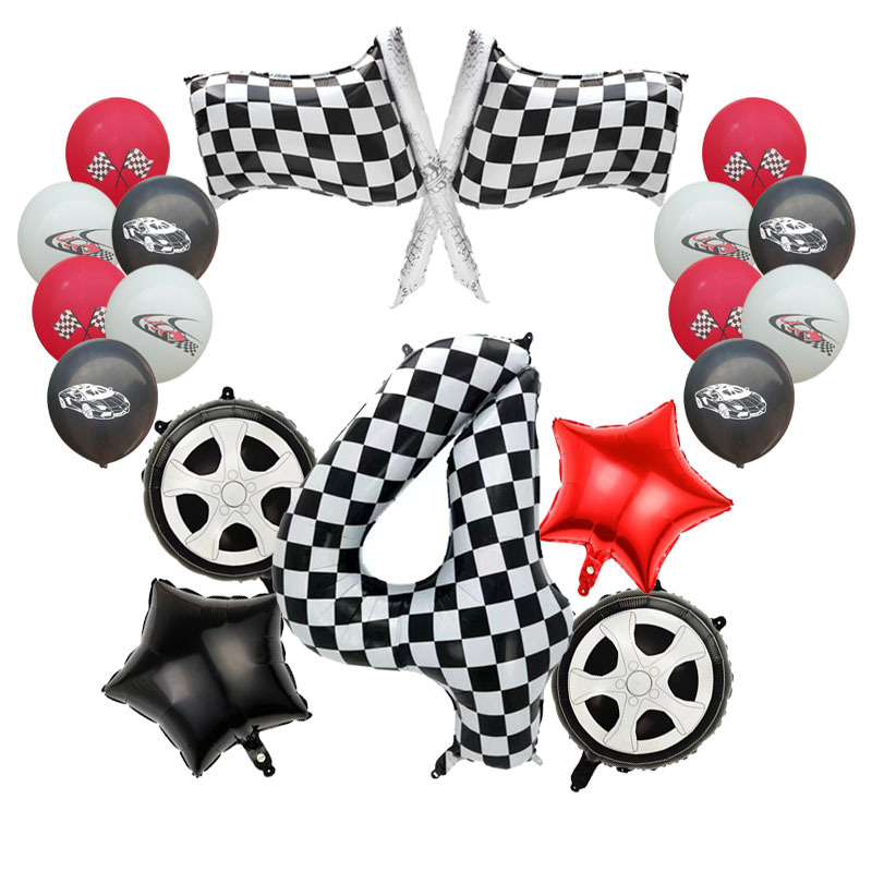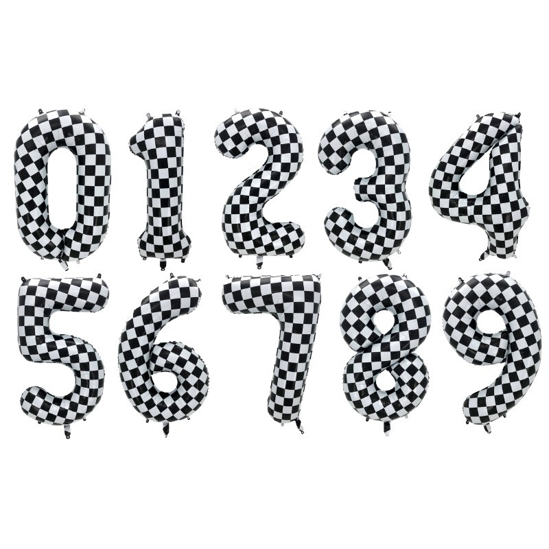 국경 간 경주 풍선 소년 생일 경주 테마 파티 풍선 장식 40 인치 흑백 격자 무늬 디지털 풍선스토어 가기