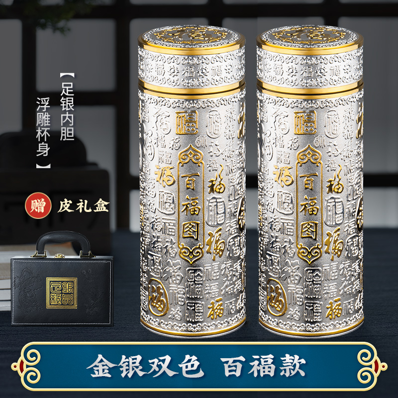 • ✷ΦΦΦΦ✷ [2개 팩] 구룡 + 백부(무료 가죽 선물 상자) 은도금 라이너★양각 컵 본체✷ΦΦΦΦ✷