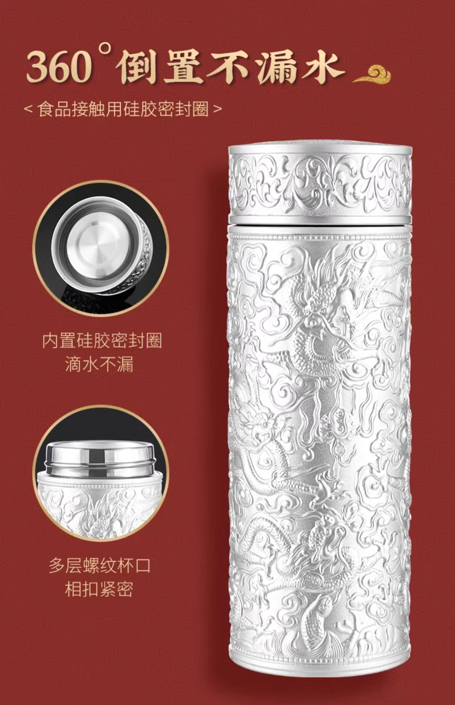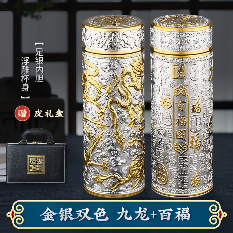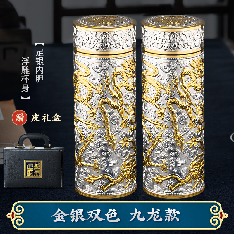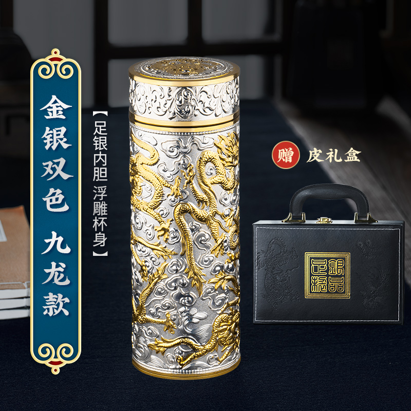 • ✷ΦΦΦΦ✷ 구룡 금은 2색(무료 가죽 선물 상자) 은도금 내부 탱크★양각 컵 본체✷ΦΦΦΦ✷