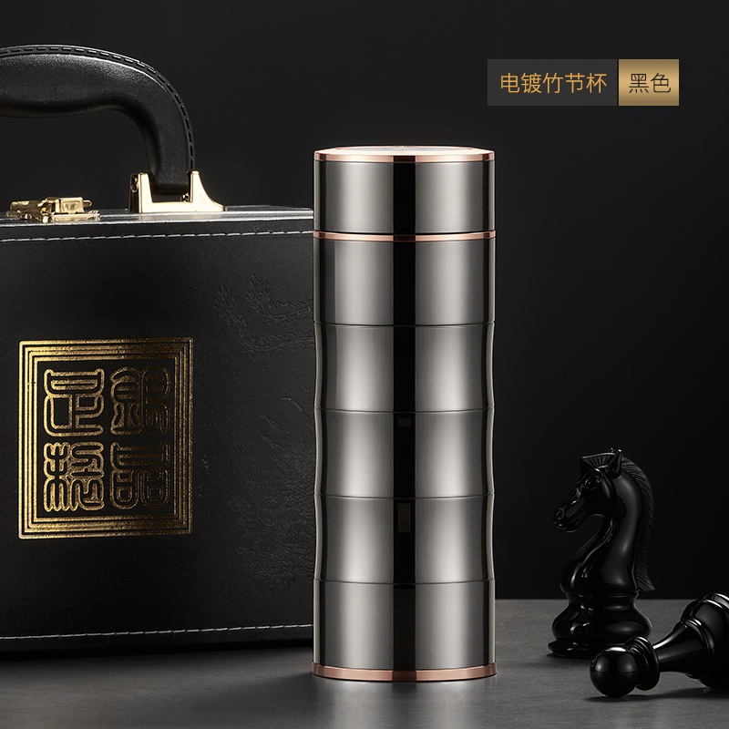 • ✷ ΦΦΦΦ ✷ 전기 도금 대나무 컵 - 검정색(무료 가죽 선물 상자) 은도금 내부 용기 ✷ ΦΦΦΦ ✷